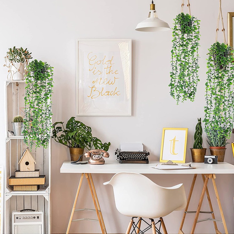 Artificial Hanging Plants with Pot Tanaman Gantung Dinding Buatan Dekorasi Bunga Daun Hijau Dekorasi Rumah Bonsai