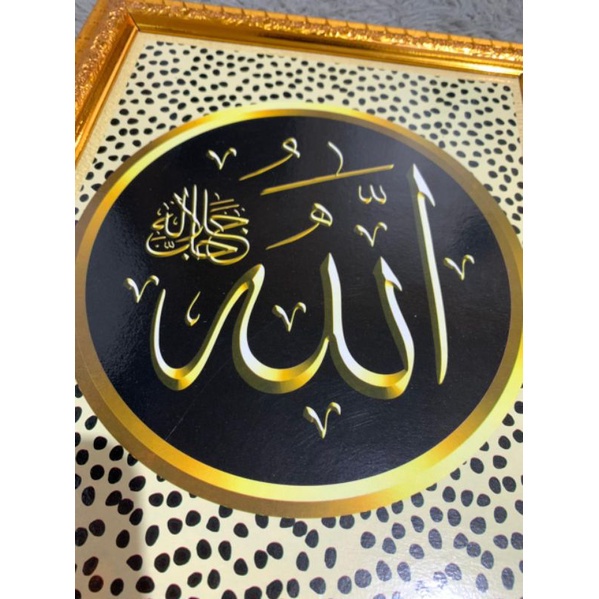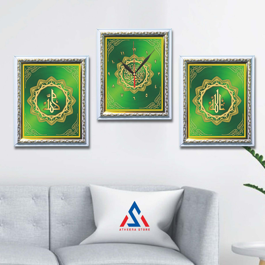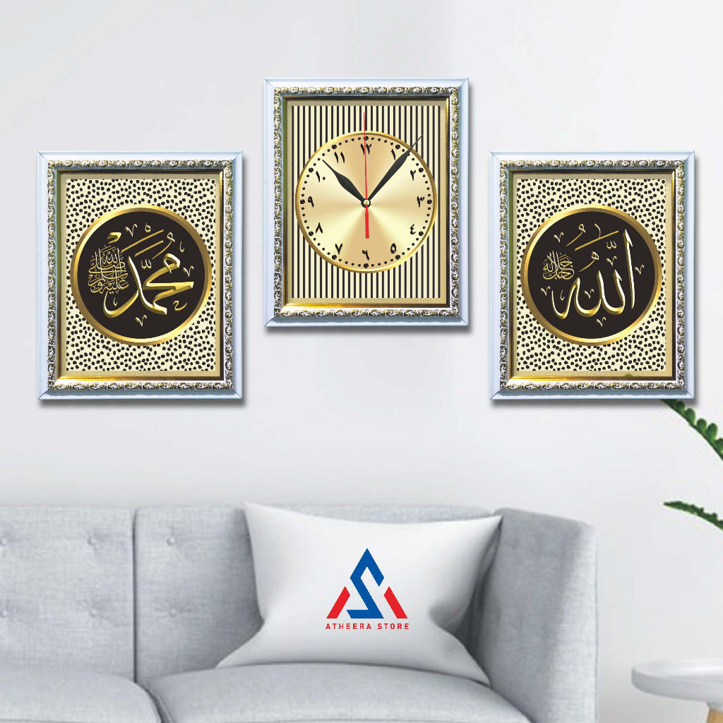 Jam Dinding Mewah Bingkai Kaligrafi Gold MDF