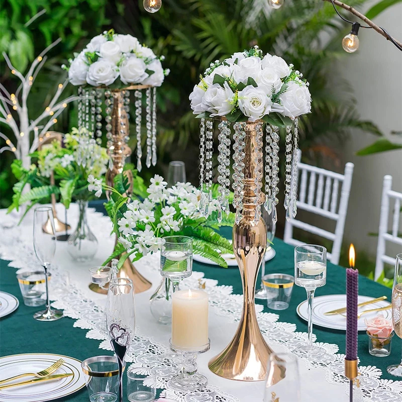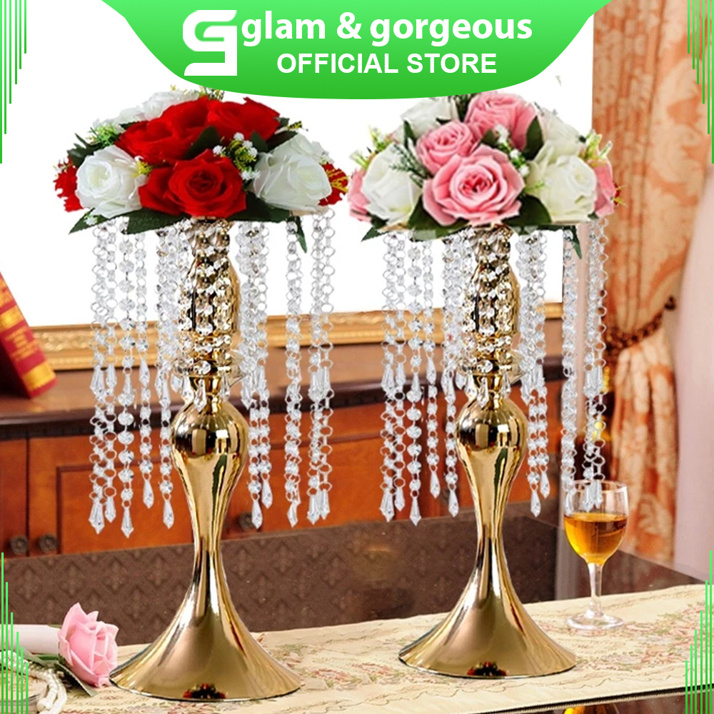 Vas Bunga Hiasan Dekorasi Mewah Pajangan Lemari Kaca Luxurious Wedding Vase Tetesan Kristal - VB001