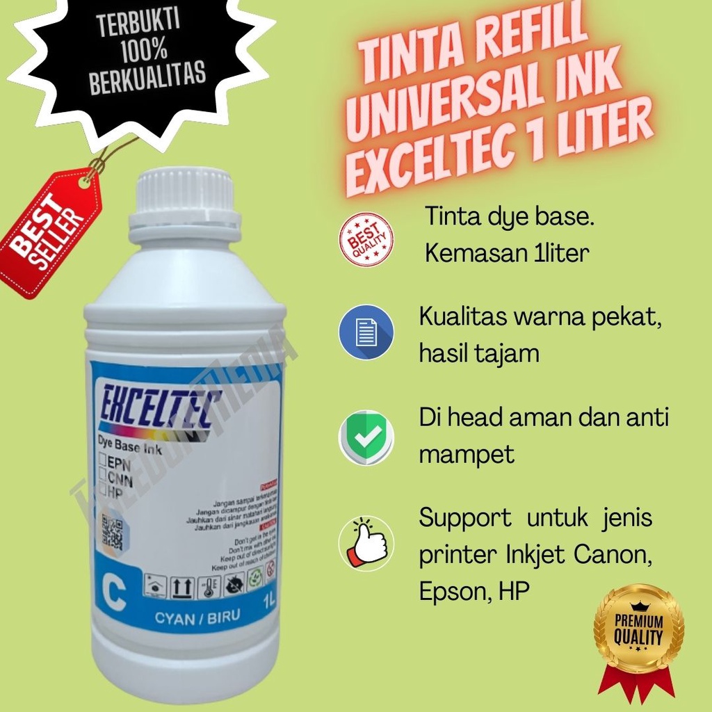 Tinta printer Exceltec 1 liter EpsonCanon Dye Base ink