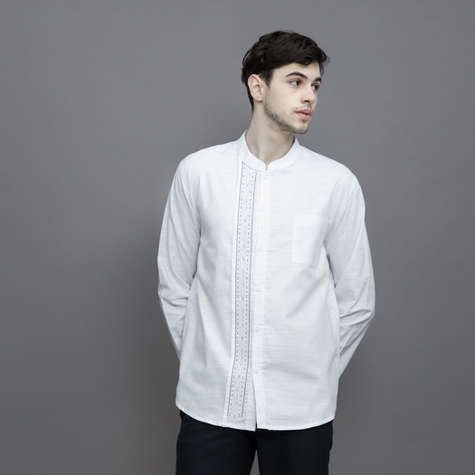 LOA STUDIOS - Baju Koko Kemeja Bordir Lengan Panjang Putih Pria - Kanz