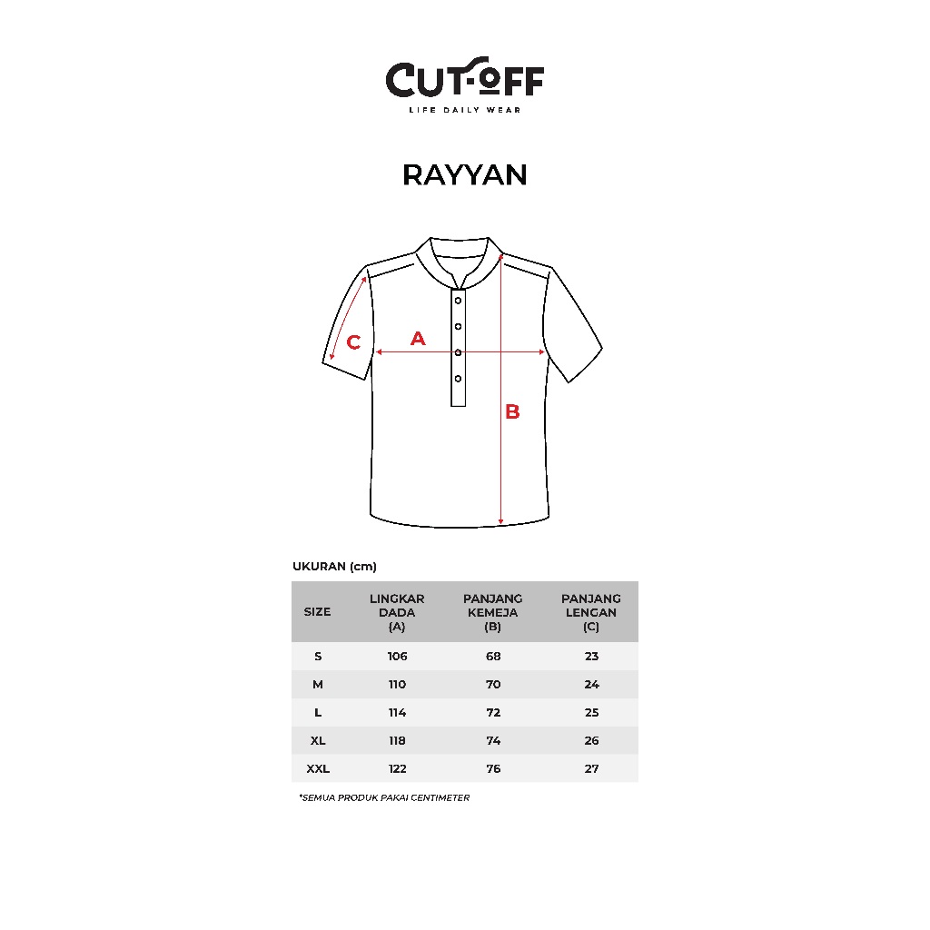 CUTOFF Rayyan Kemeja Koko Cotton Rayon Kasual Bordir Basic Polos Pria Lengan Pendek