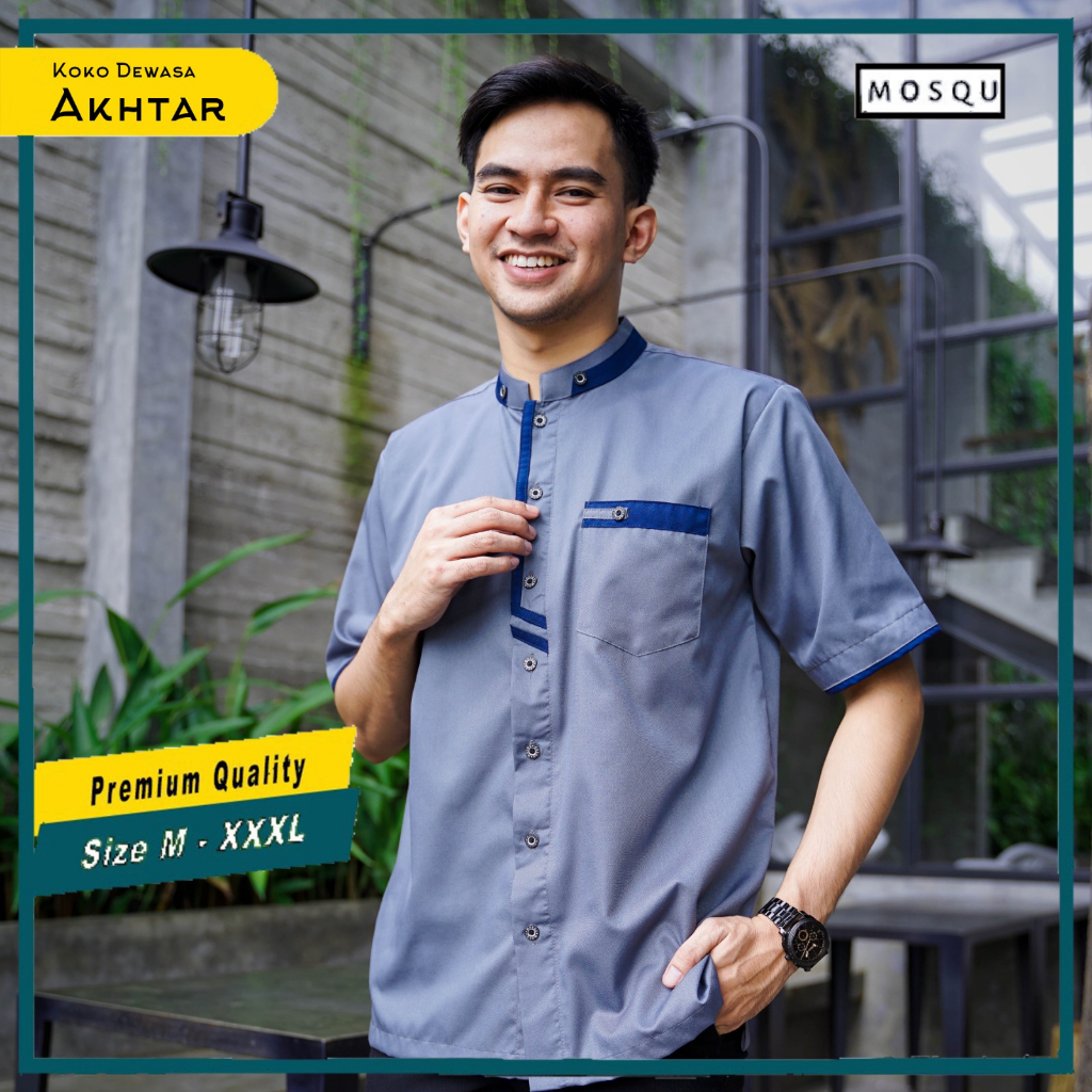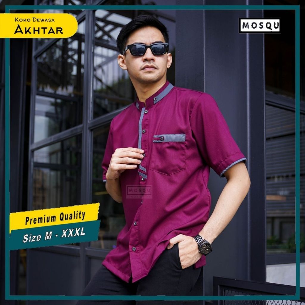 Mosqu Akhtar Baju Koko Pria Dewasa Lengan Pendek Kemeja Koko Size S - 4XL