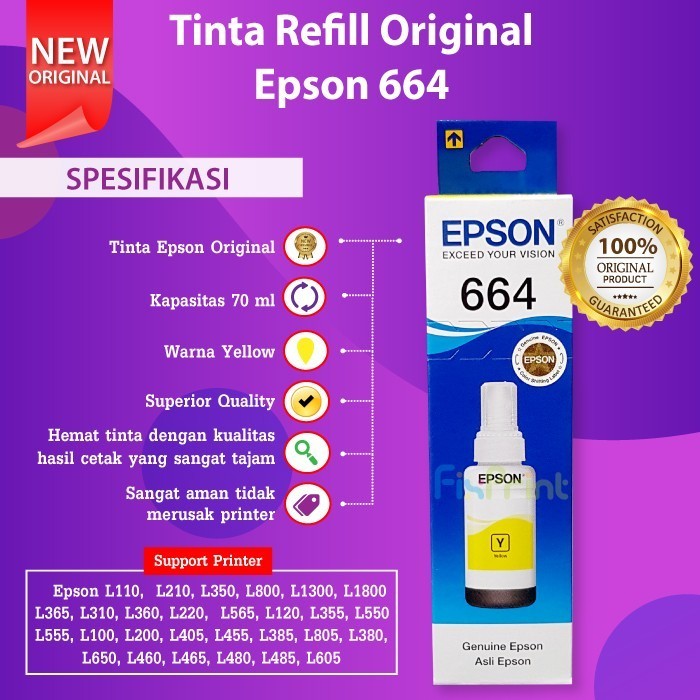PAKET CMYK TINTA 664 T664 EPSON BLACK CYAN MAGENTA YELLOW L121 L120