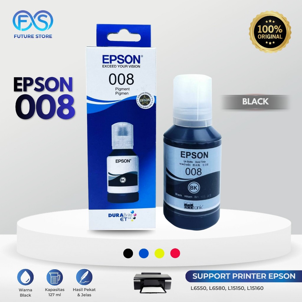 Tinta Epson 008 Black Hitam For Epson L15150 L15160 L15180 L6460 L6490 L6550 L6570 L6580 Original