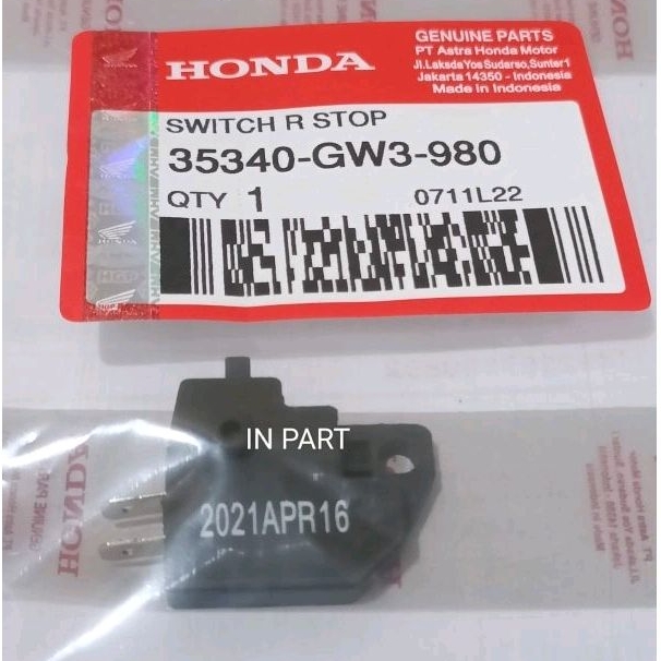 35340-GW3-980 SWITCH REM DEPAN CAKRAM SEMUA TIPE HONDA BEBEK METIC DAN SPORT