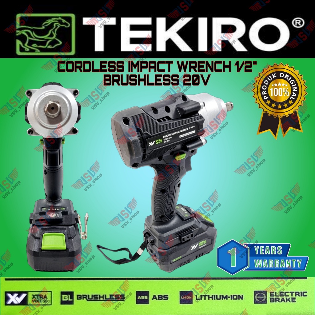 TEKIRO Cordless Impact Wrench 1/2" Brushless 20V Alat Pembuka Baut 600NM