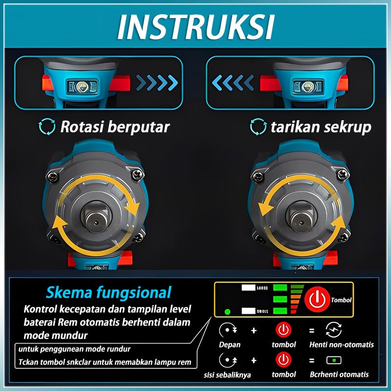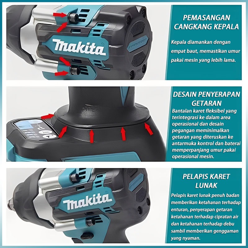 Makita 880N.m Impact Wrench impact driver cordless impact mesin impact bor impact untuk Baut Mobil CVT Velg Mesin dan Pe