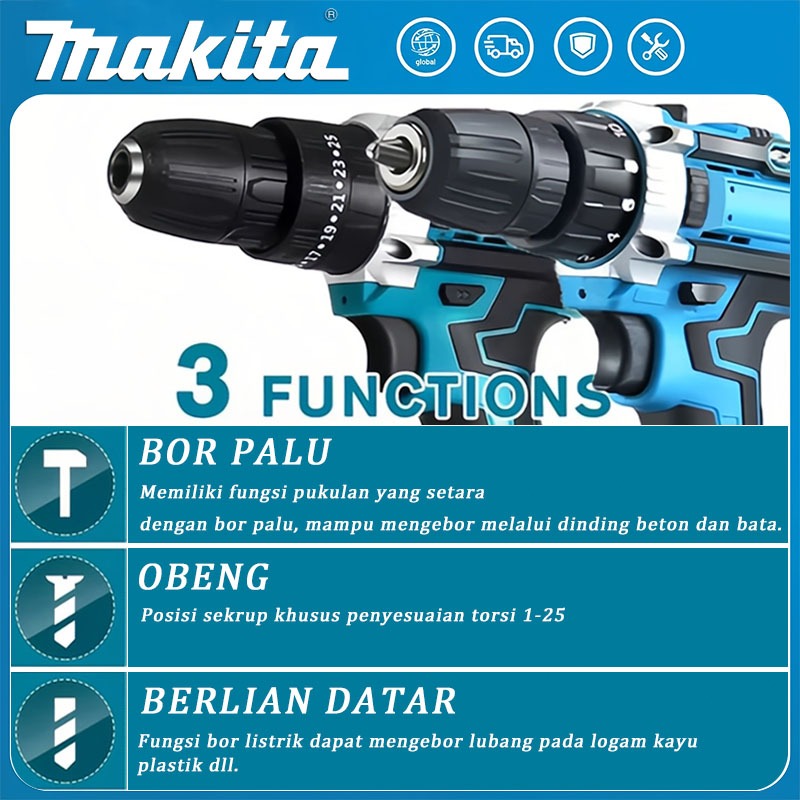 Makita 1850R/menit bor cordless cordless drill bor impact baterai impact drill mesin bor listrik