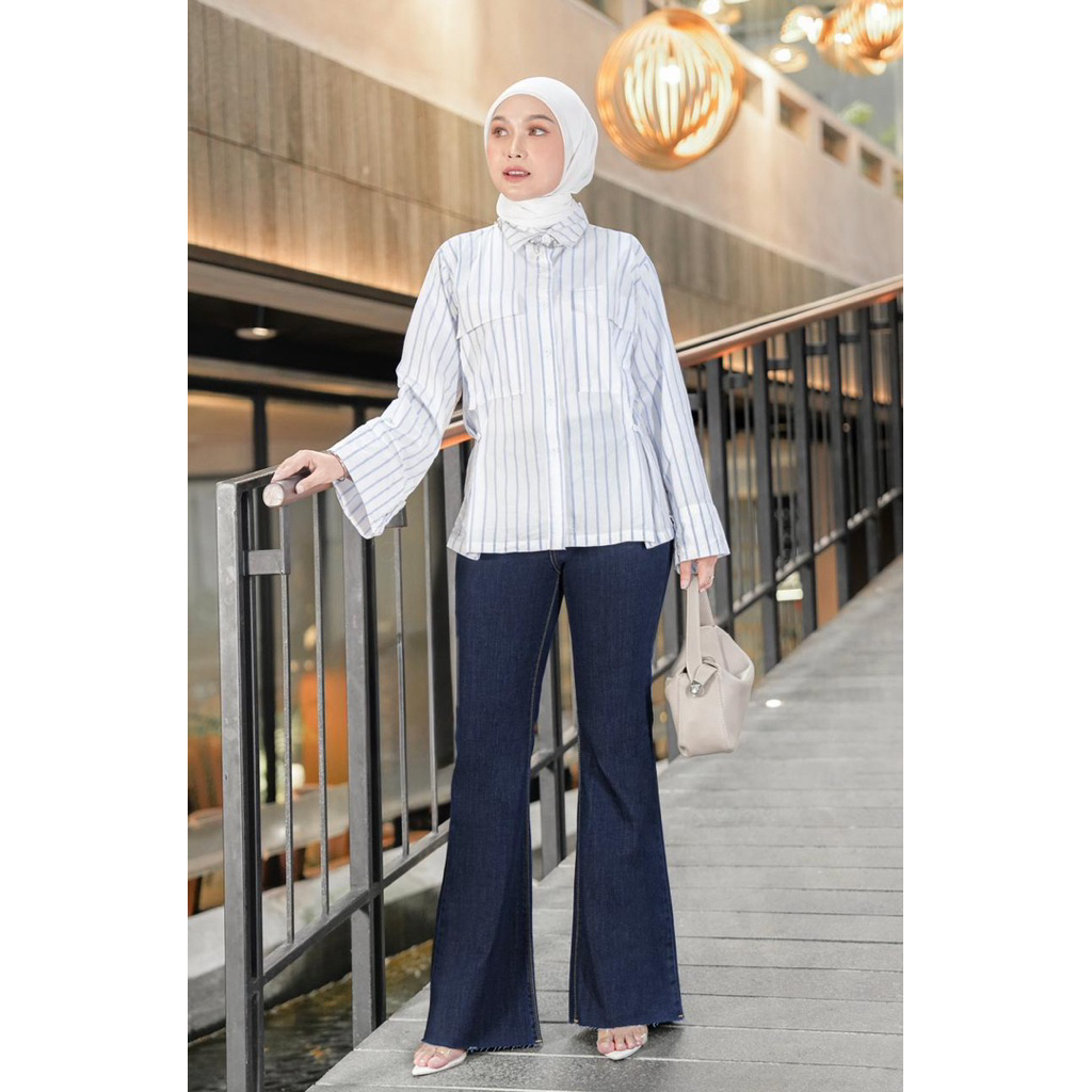 Kienka Emy Flared Jeans Celana Panjang Cutbray Wanita Unfinished
