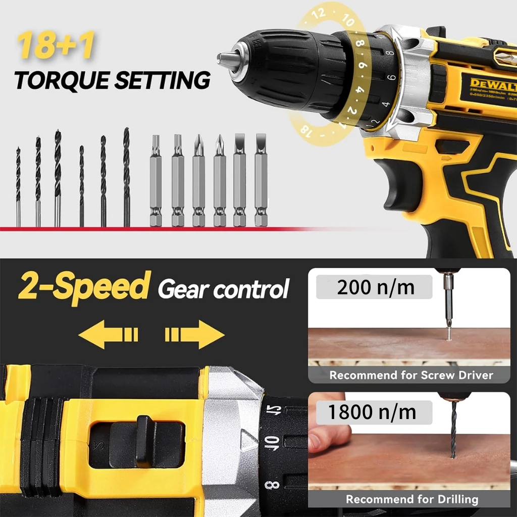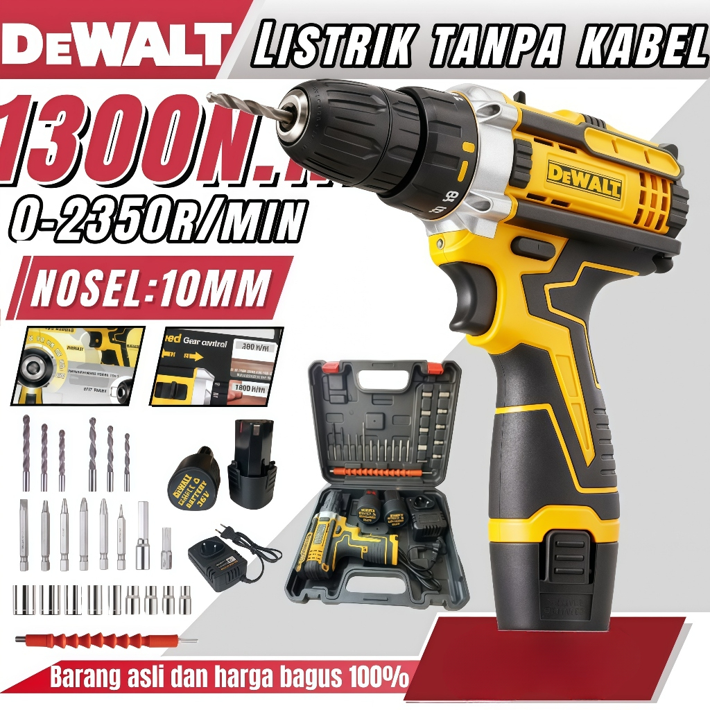 DEWALT Mesin Bor Baterai Cordless Drill 10MM Bor Tanpa Kabel Cordless Impact Drill 2*Baterai 96V Multiguna Pengemudi S