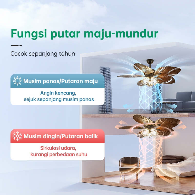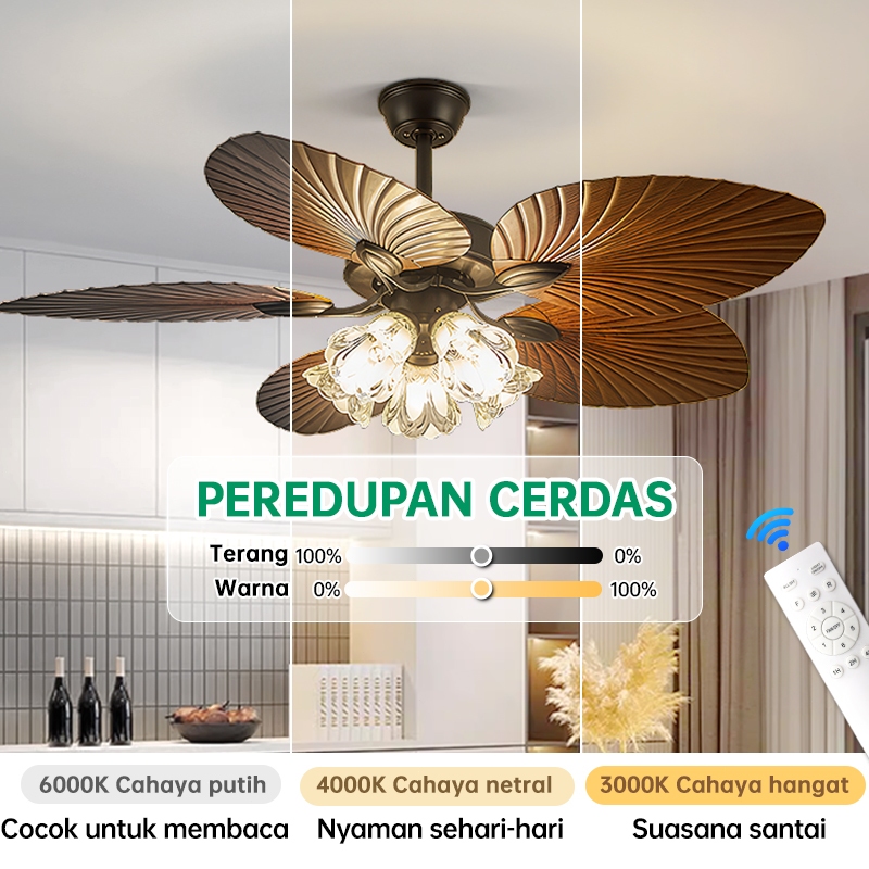 GEOUS Lampu Kipas Angin Gantung Plafon R Tamu Hias 2IN1 3 Warna 6 Kecepatan 52 Inci Gaya Kipas Lampu Gantung Meja Makan