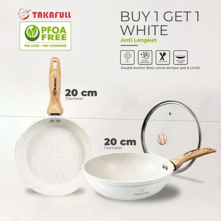 TAKAFULL Paket Mini Frypan+Wokpan 20cm Double Bottom Kompor Gas & Listrik Marble Coating Aluminium
