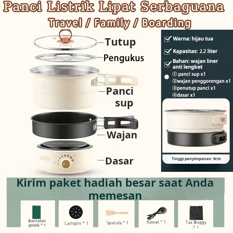 Mak Cepat 2,2L 500W Panci Listrik Lipat Desain Terpisah /Kompor Listrik Serbaguna Portable/Wajan Multifungsi/Hemat Energ