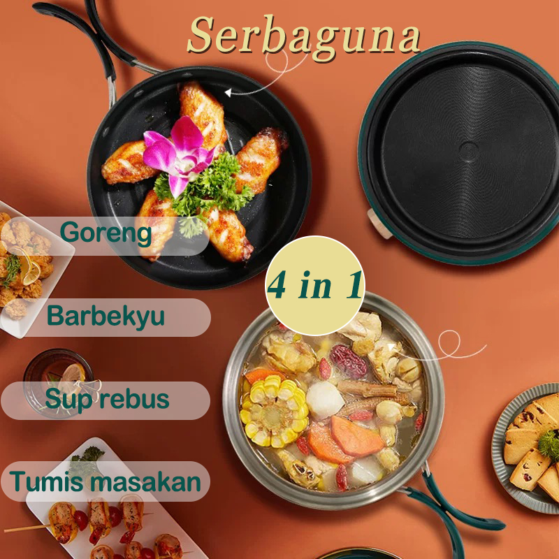 Panci Kompor Listrik 1.6L Lipat Kukusan Listrik Multifungsi Portabel Panci Pemanggang Wajan