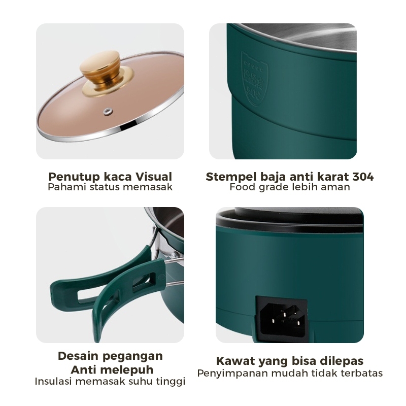 Panci Listrik Watt Rendah Serbaguna 2.2L / Kompor Elektrik Portable / Travel Electric Cooker / Kompor Listrik Multifung