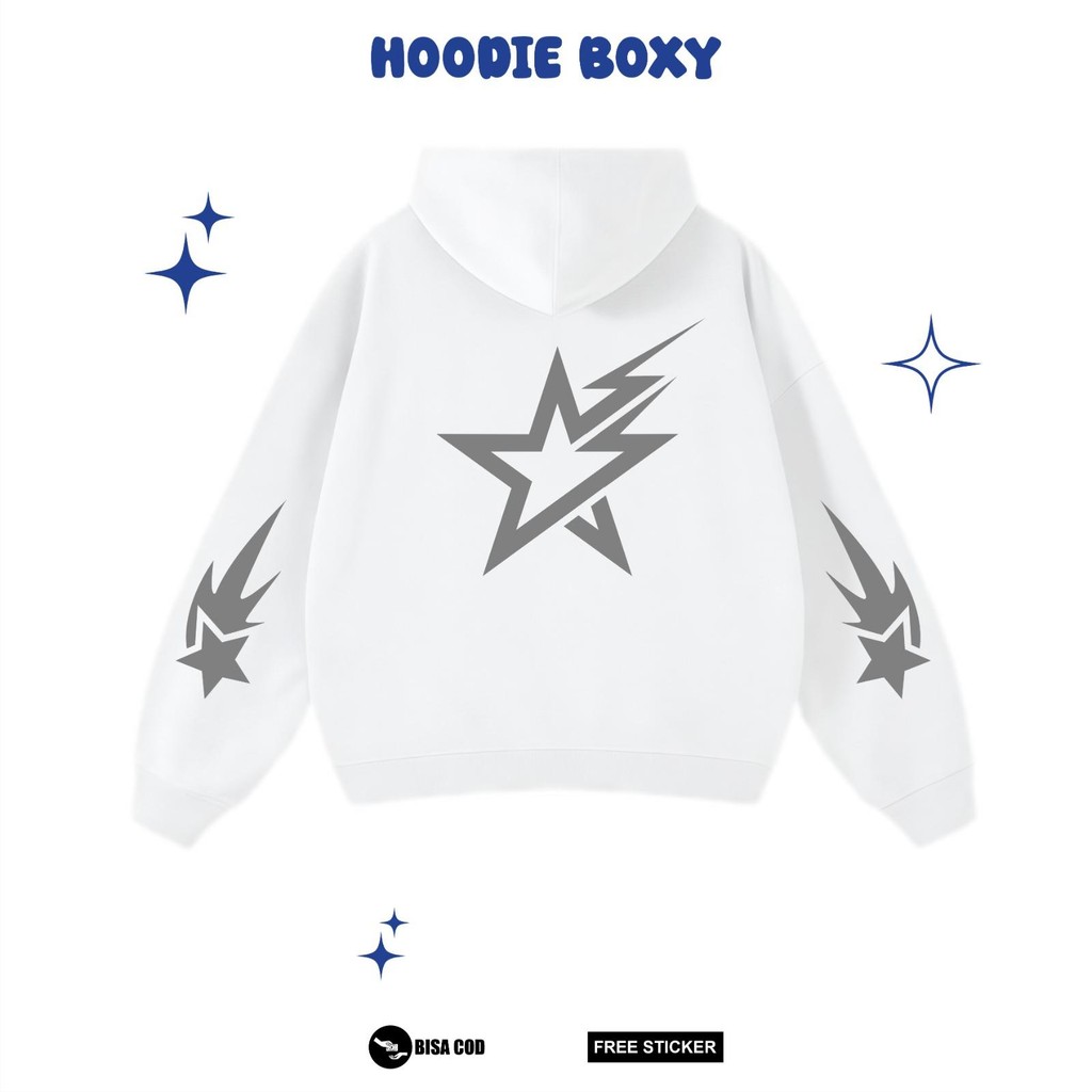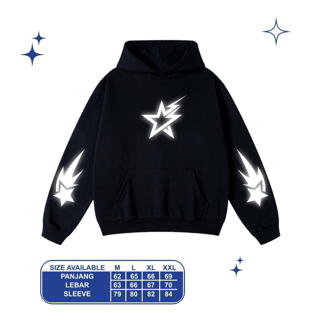 Hoodie Boxy Oversized Sablon Reflektif Desain Bintang By Narcissism JF5 JE5 NF5 OE5
