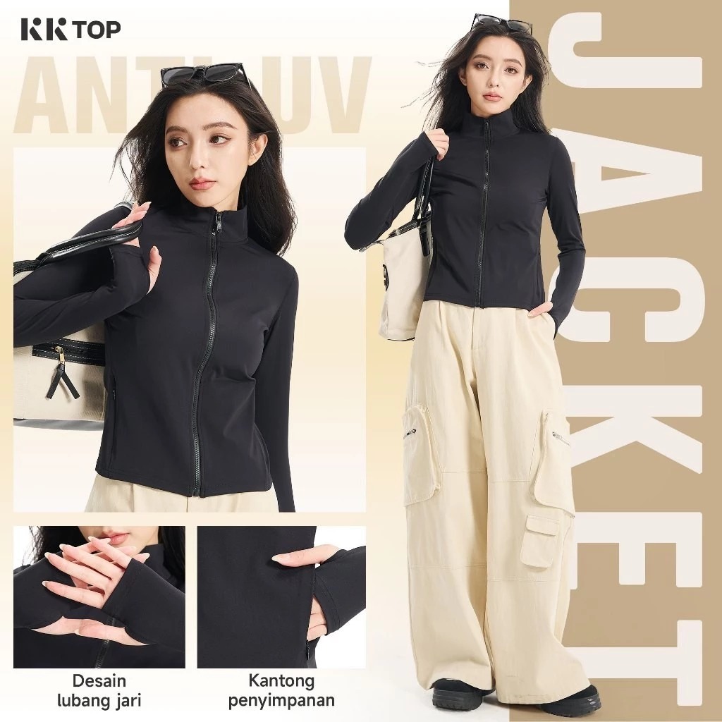 Kktop Jaket Wanita Lycra® Premium Tahan Angin Quick Dry Slim Sport Gym Running Hiking X026