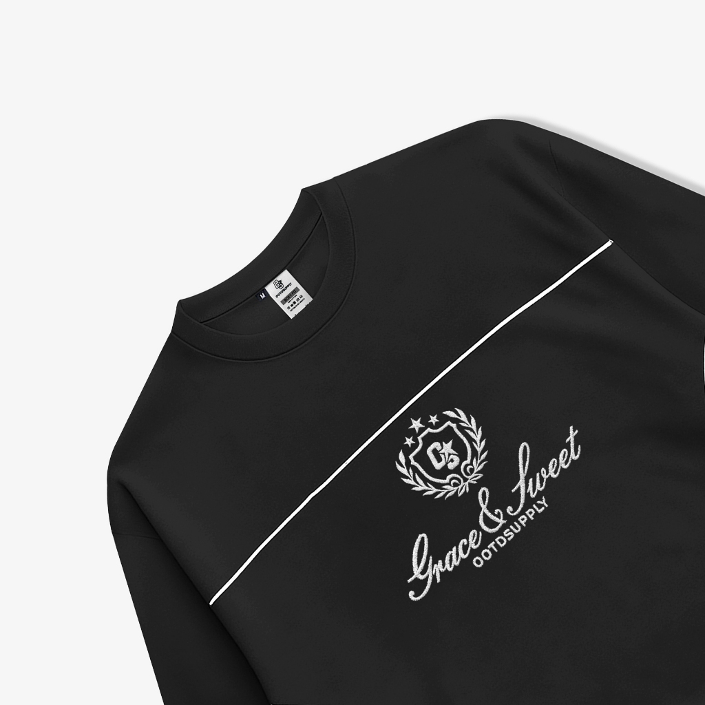 OOTDSUPPLY Longsleeve Boxy Cutline Grace & Sweet Embroidery Black l Tshirt Boxyfit Panjang Uni | Kaos Lengan Panjang