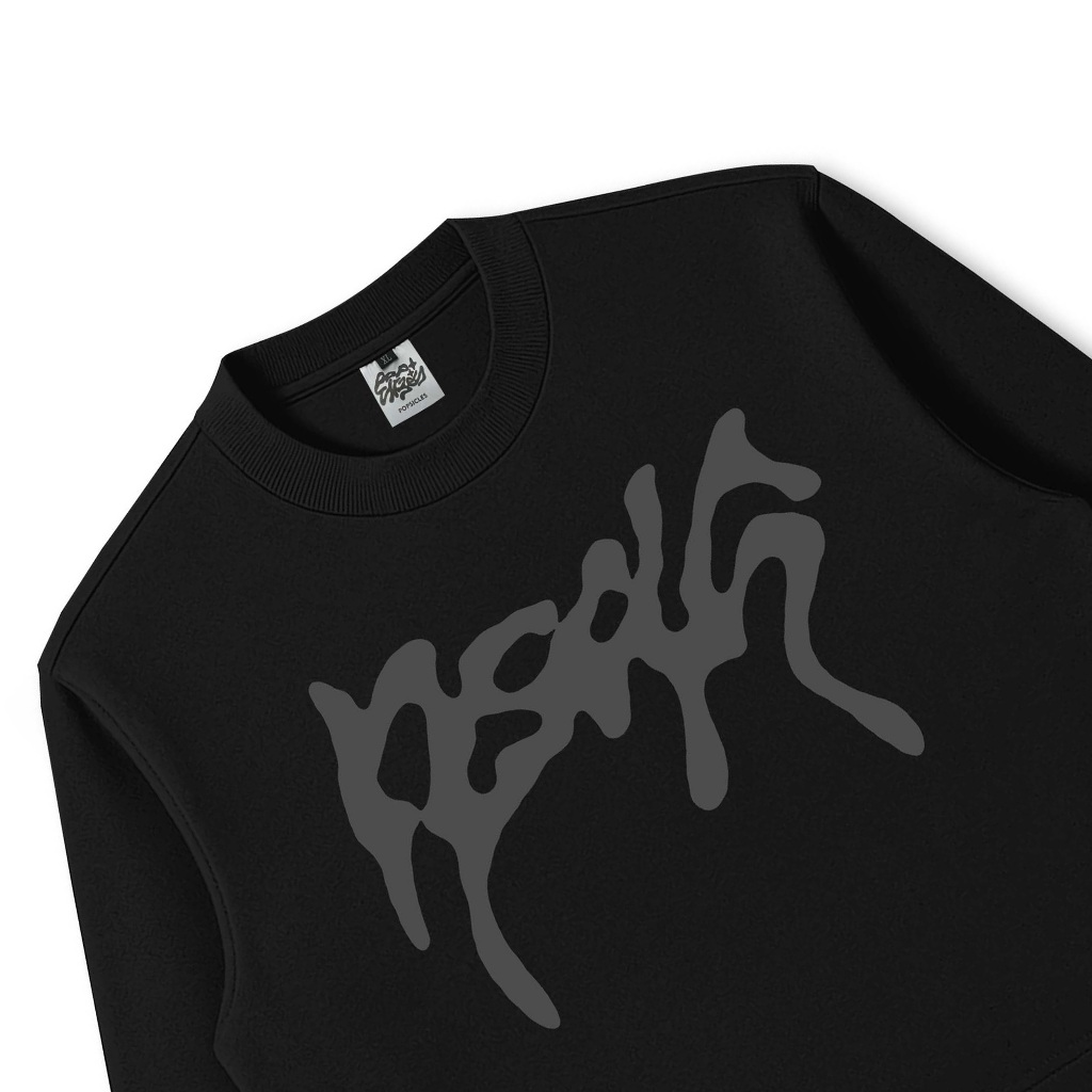 Popsicles Longsleeve Boxy Lengan Panjang Melt Script Hitam - Boxy Crop Longsleeve Kaos Oversize Printing Tee