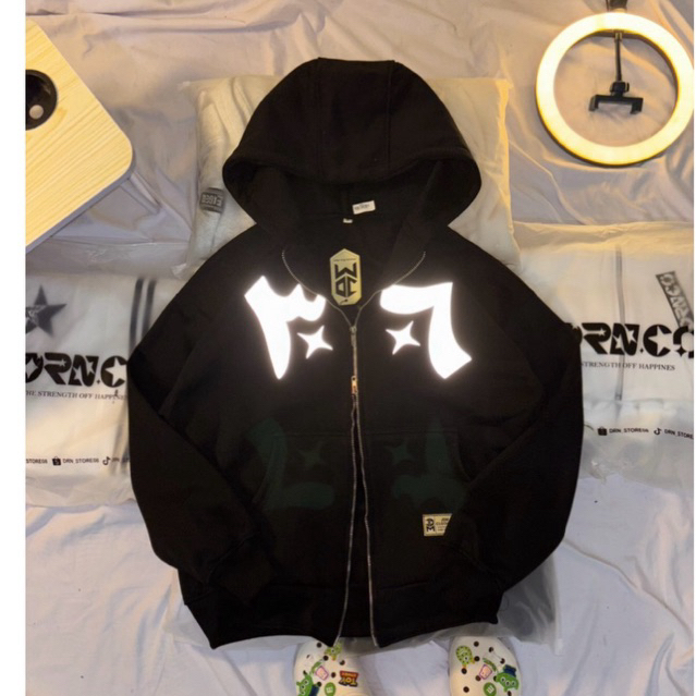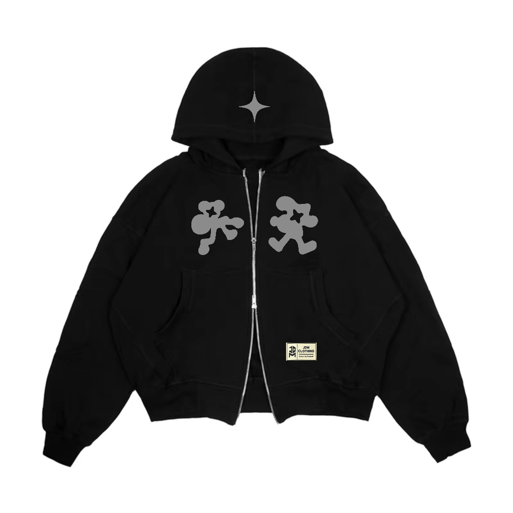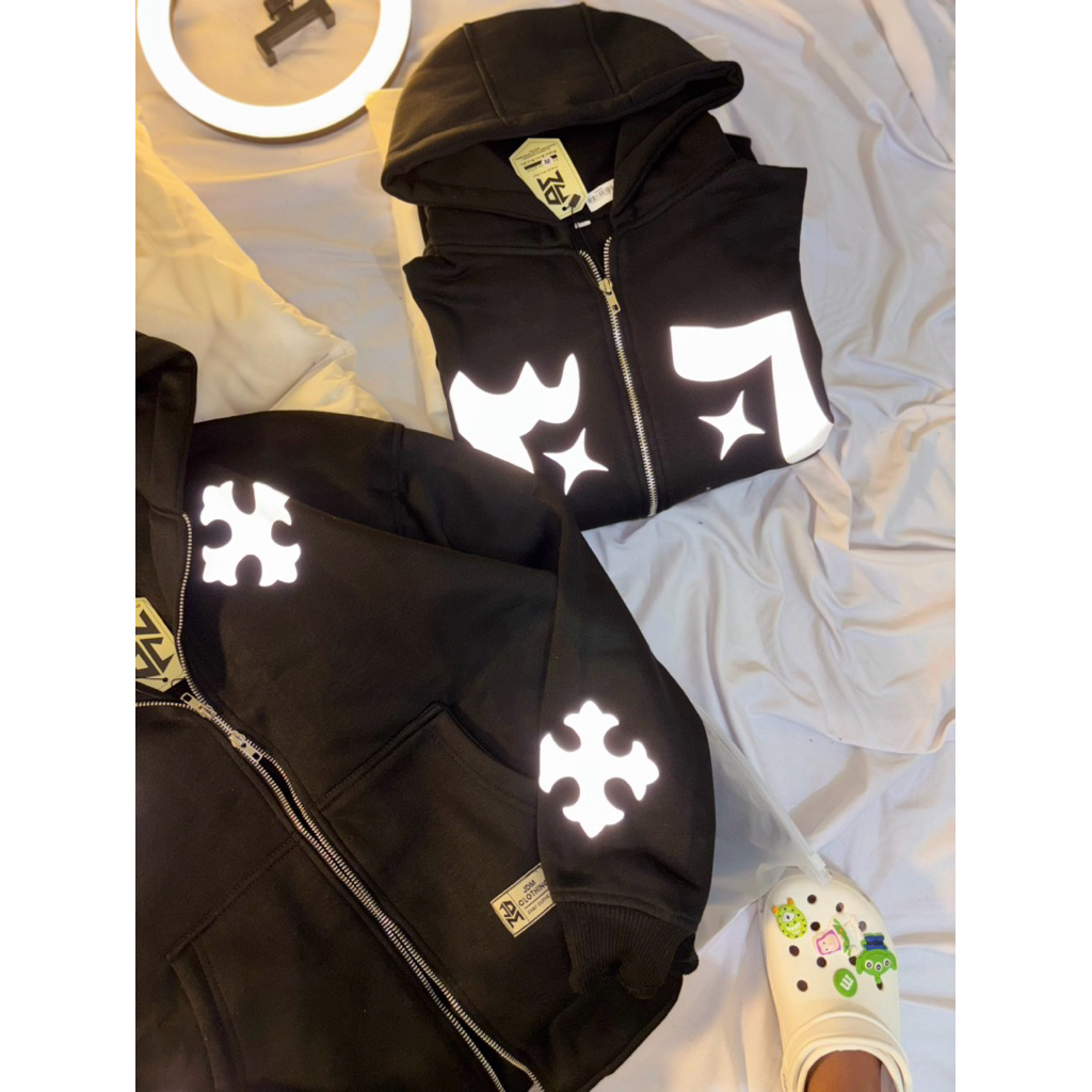 JDMCLOTHING Zipper Boxy Hoodie Reflective Menyala Double Kepala Zipper Fleece 280 Gsm Uni