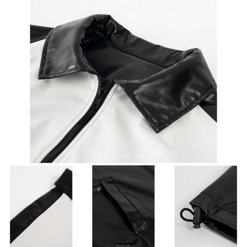 Hz- Contrast Color Fashion Leather Jacket Autumn Jaket Kulit Wanita Musim Dingin Atasan Loose Longgar Big Size Import Mo