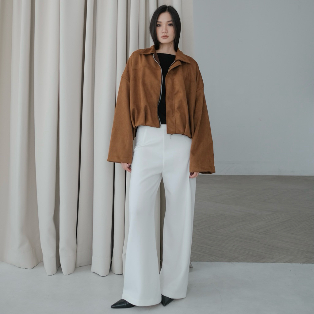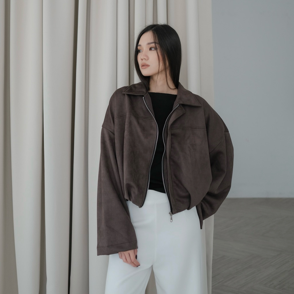 Jaket Wanita Oversized Bomber Suede Jacket By Ateera.Id