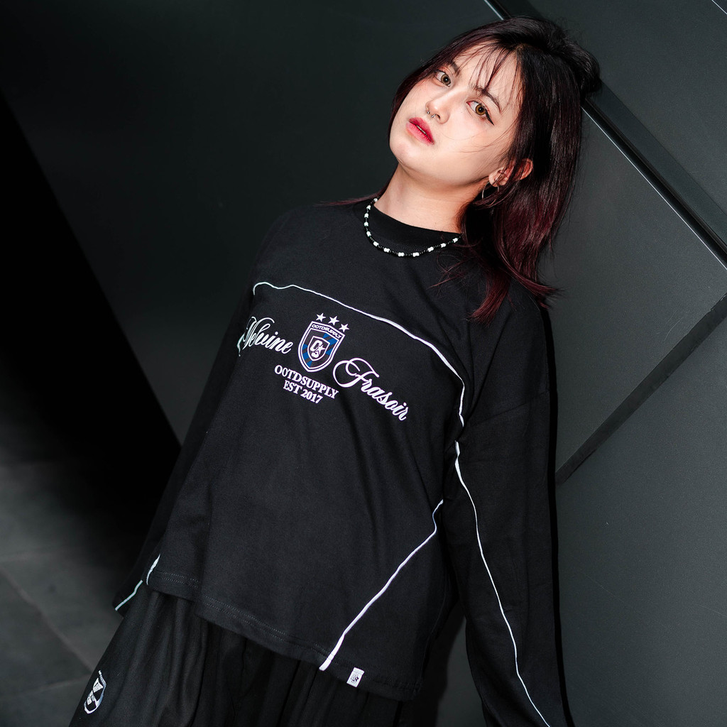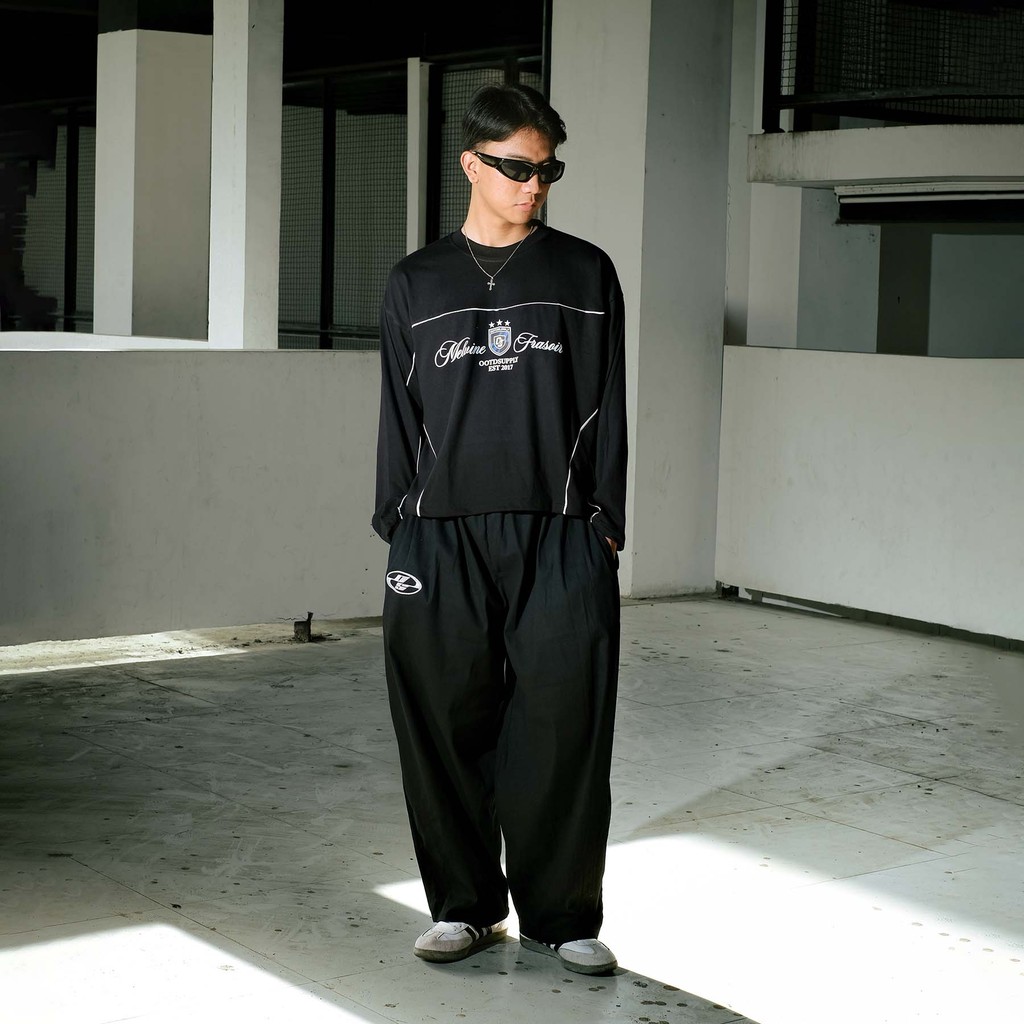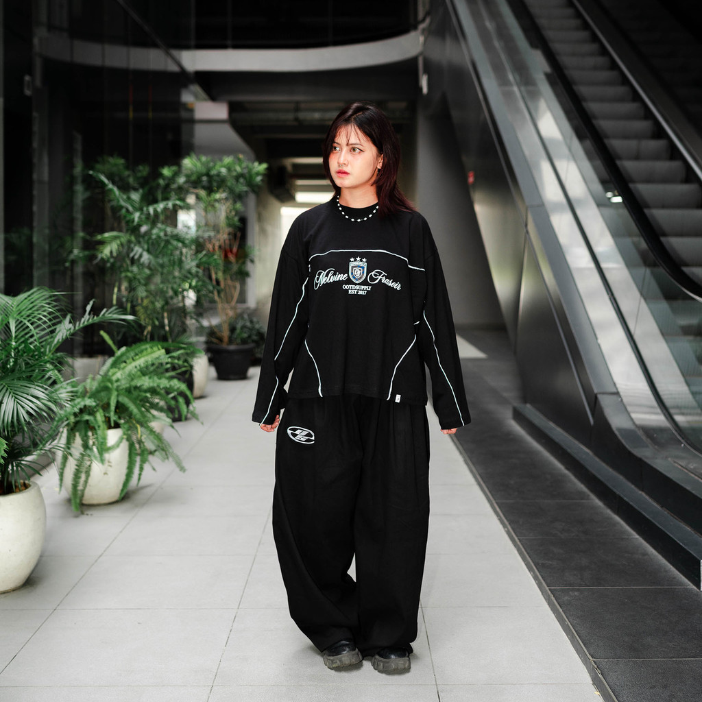 OOTDSUPPLY Longsleeve Boxy Cutline Melvine Black l Tshirt Boxyfit Panjang Uni | Kaos Lengan Panjang Pria dan Wanita |