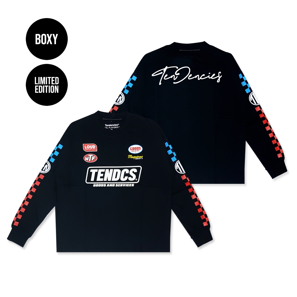 TENDENCIES Tshirt Long Sleeve Boxy Industrial Garage Cropped Black