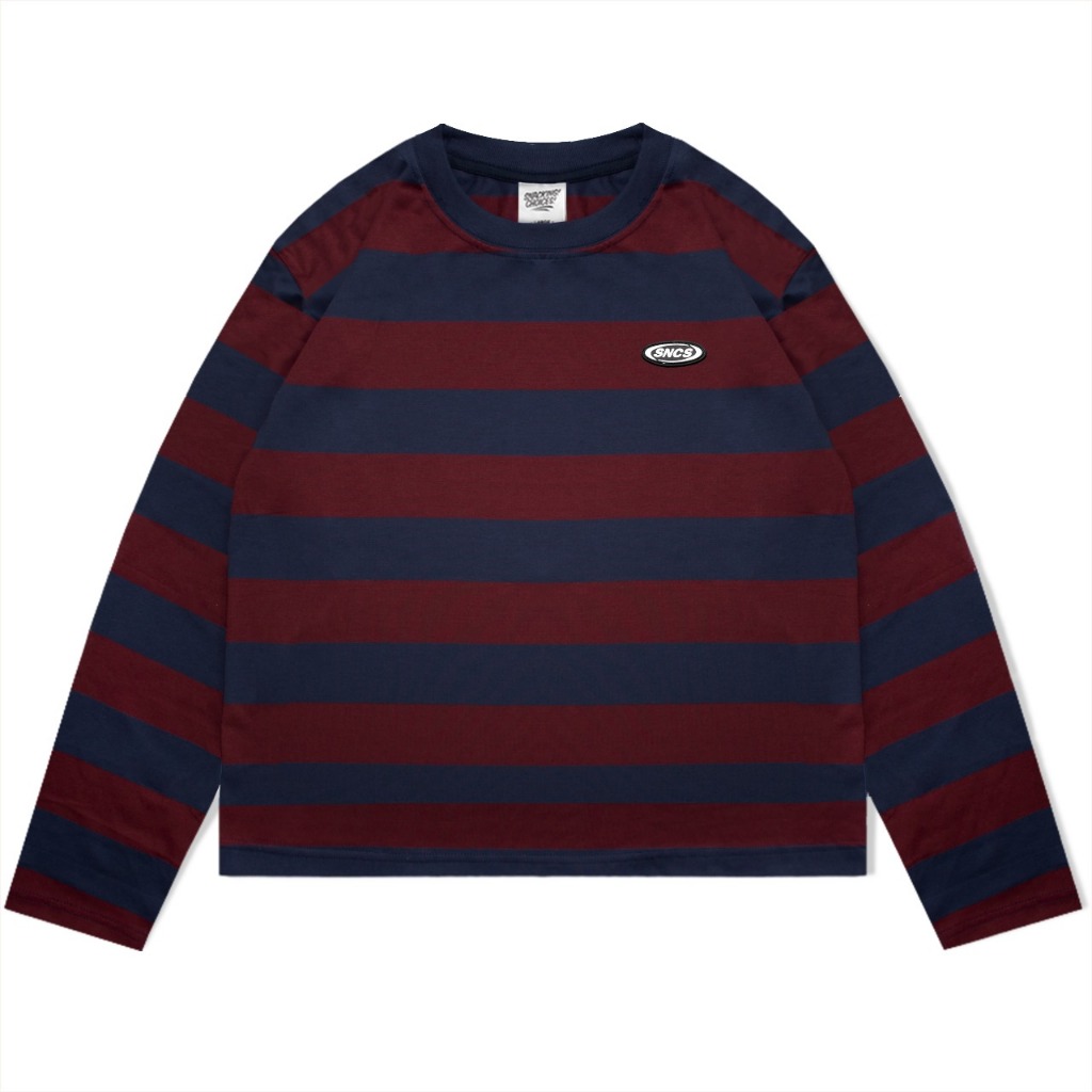 Longsleeve Boxy Strip | Grizy | Navy Maroon | Snackingchoices