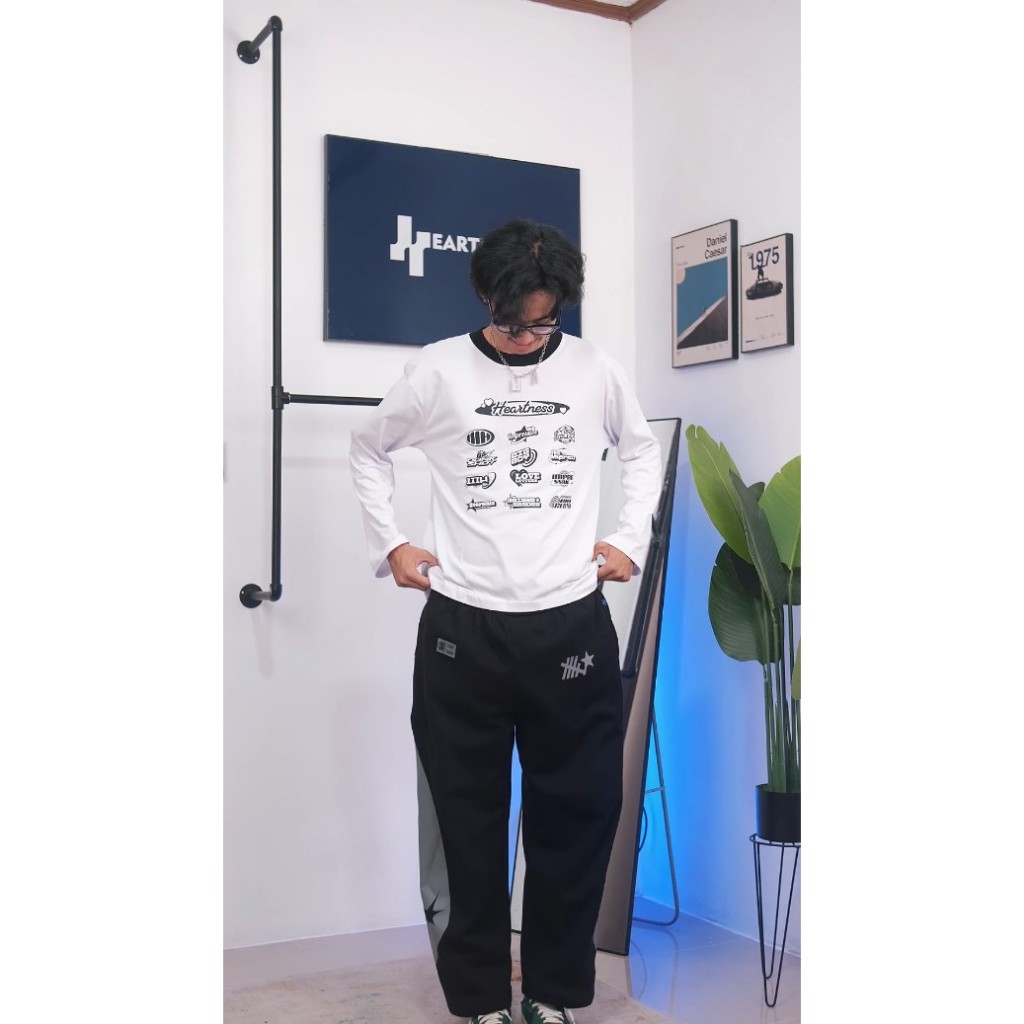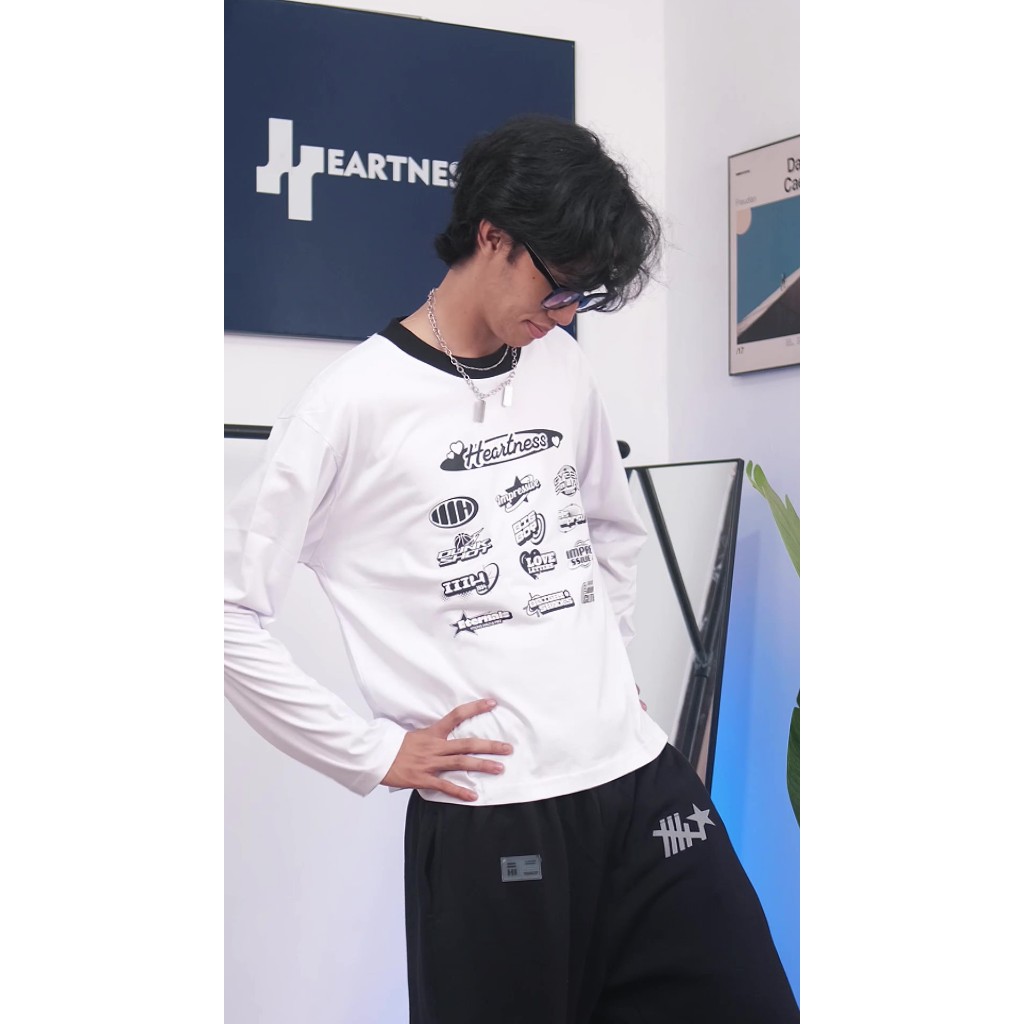 HEARTNESS Tshirt Boxy Oversize Fit Longsleeve 13th Logos Kaos Putih Pria Wanita - Cotton Combed 20s