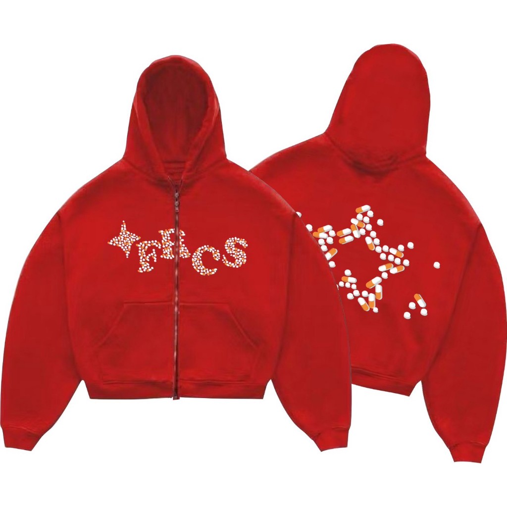 Jaket Sweater Hoodie Merah Boxy Double Zipper Pria Dan Wanita Aesthetic Vintage Cloud Of Love