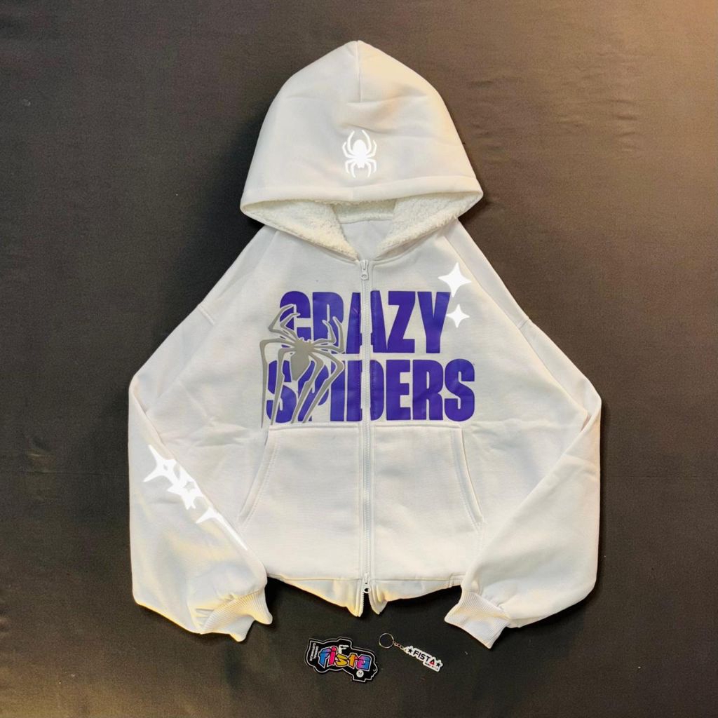 Hoodie boxy spider ziper dua kepala sablon palstisol+fuup foaming bulu serpa+reflektip menyala gsm300 premium(UNI)