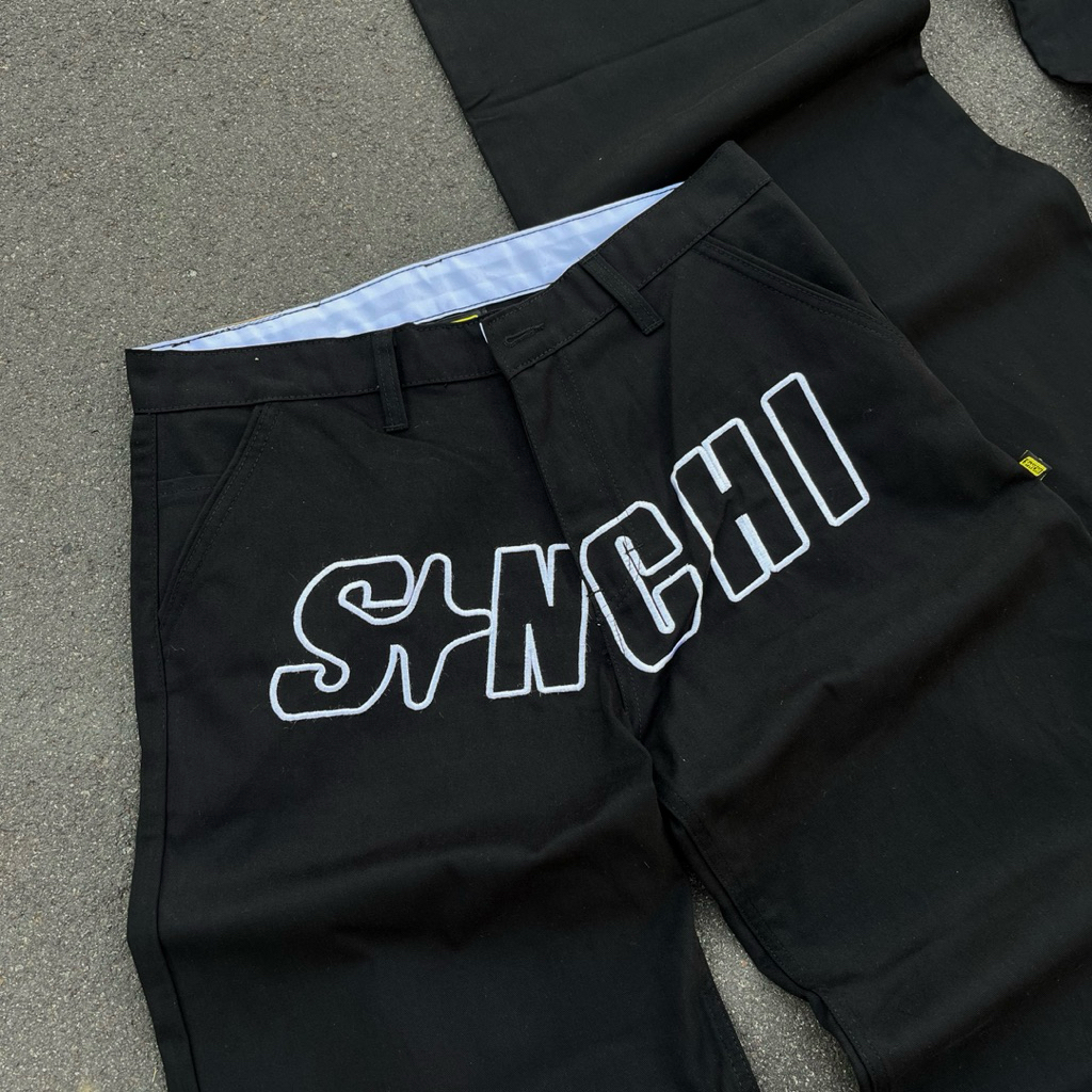 Sanchi Studios - Baggy Pants Chino Black Sky / Celana Panjang Chino Unisex Bordir White