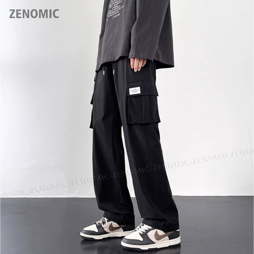 Celana Baggy Cargo Panjang Pria Oversize Loosepant Zenomic Black Korean Style Kargo Gombrong