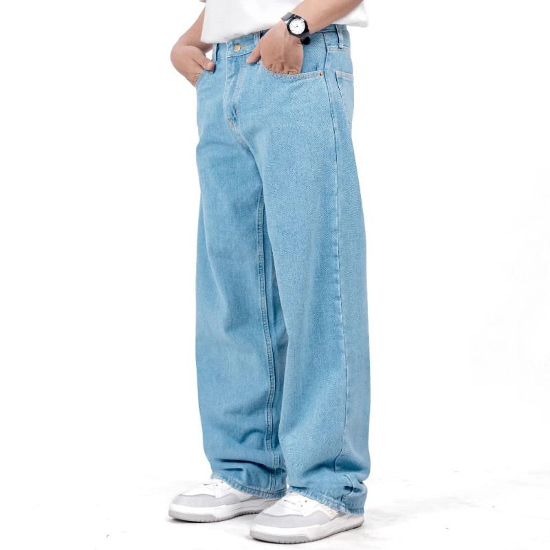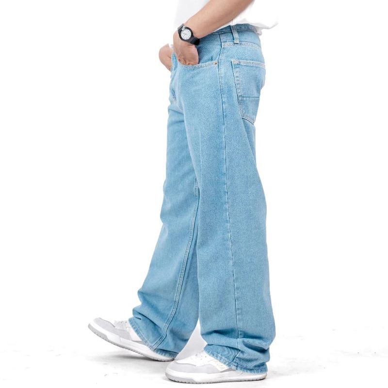 Celana Jeans Pria Baggy Pants Korean Style Oversize Straight Loose Blue Reguler Fit Wide Leg