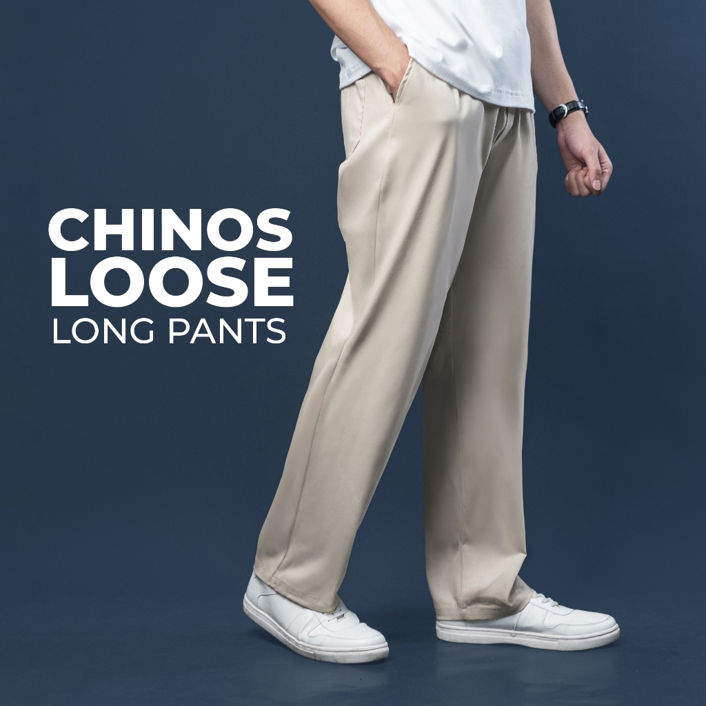 Fatto A Mano Celana Chinos Loose Fit Long Pants Baggy Panjang Krem Muda Light Cream