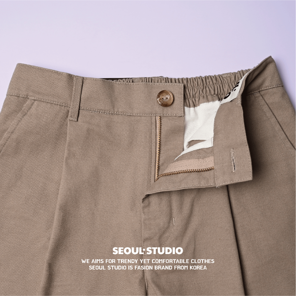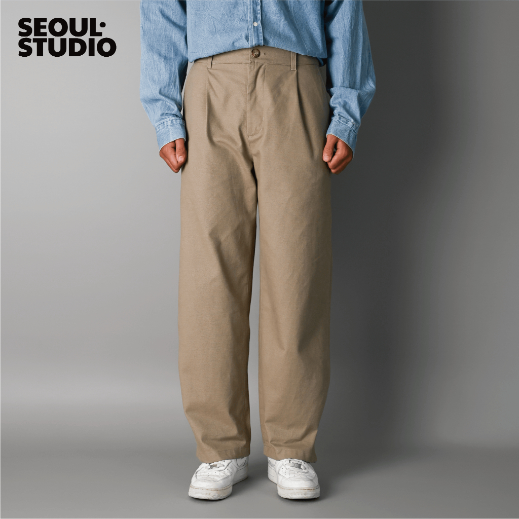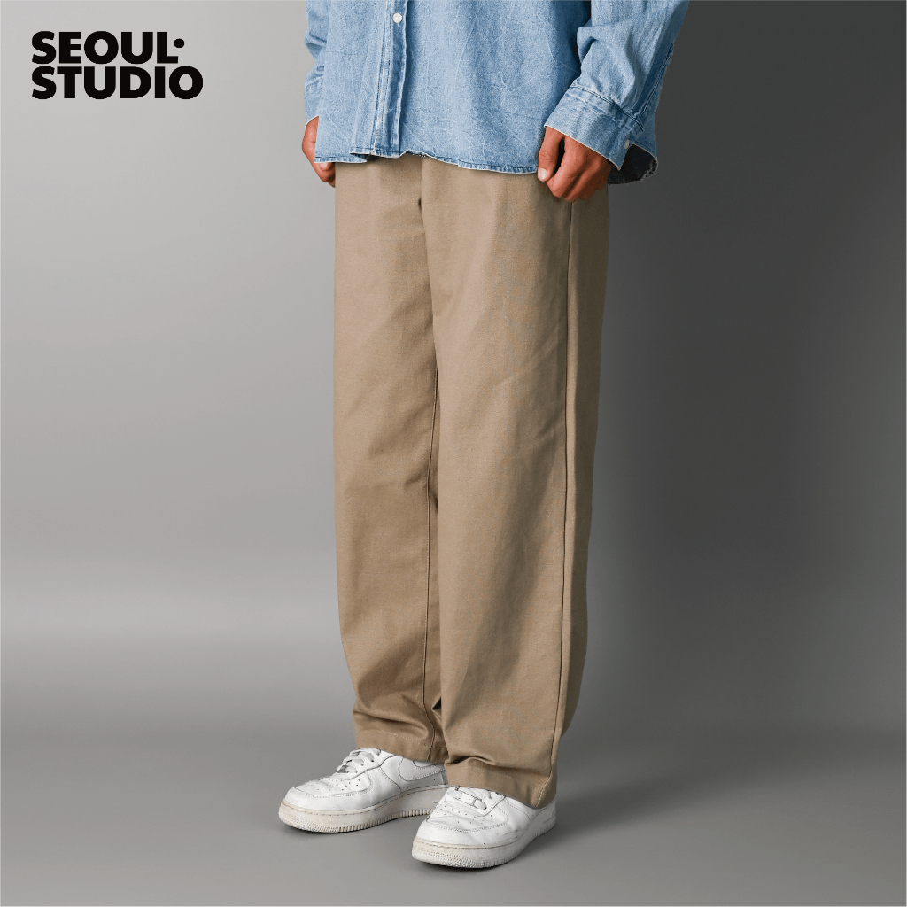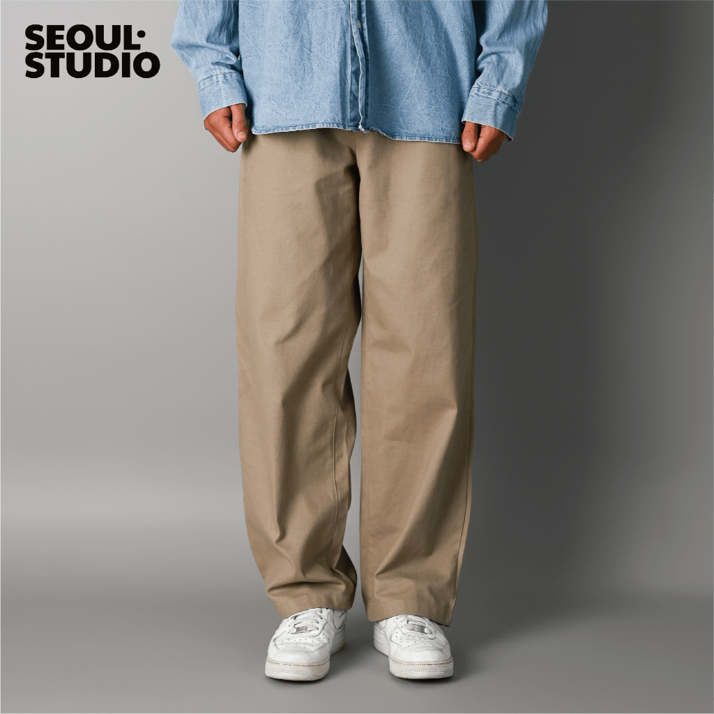 Seoul Studio Jongno Loose Fit Chinos Beige Baggy Chino Pants Celana Panjang Twill Cotton Jeans