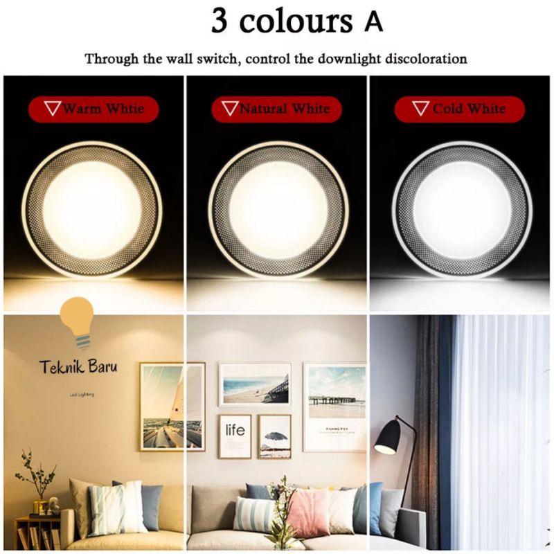 Lampu Downlight 3 warna 5w 6w 7w Led Panel Putih Natural Kuning Biru ungu Hias plafon kamar tidur