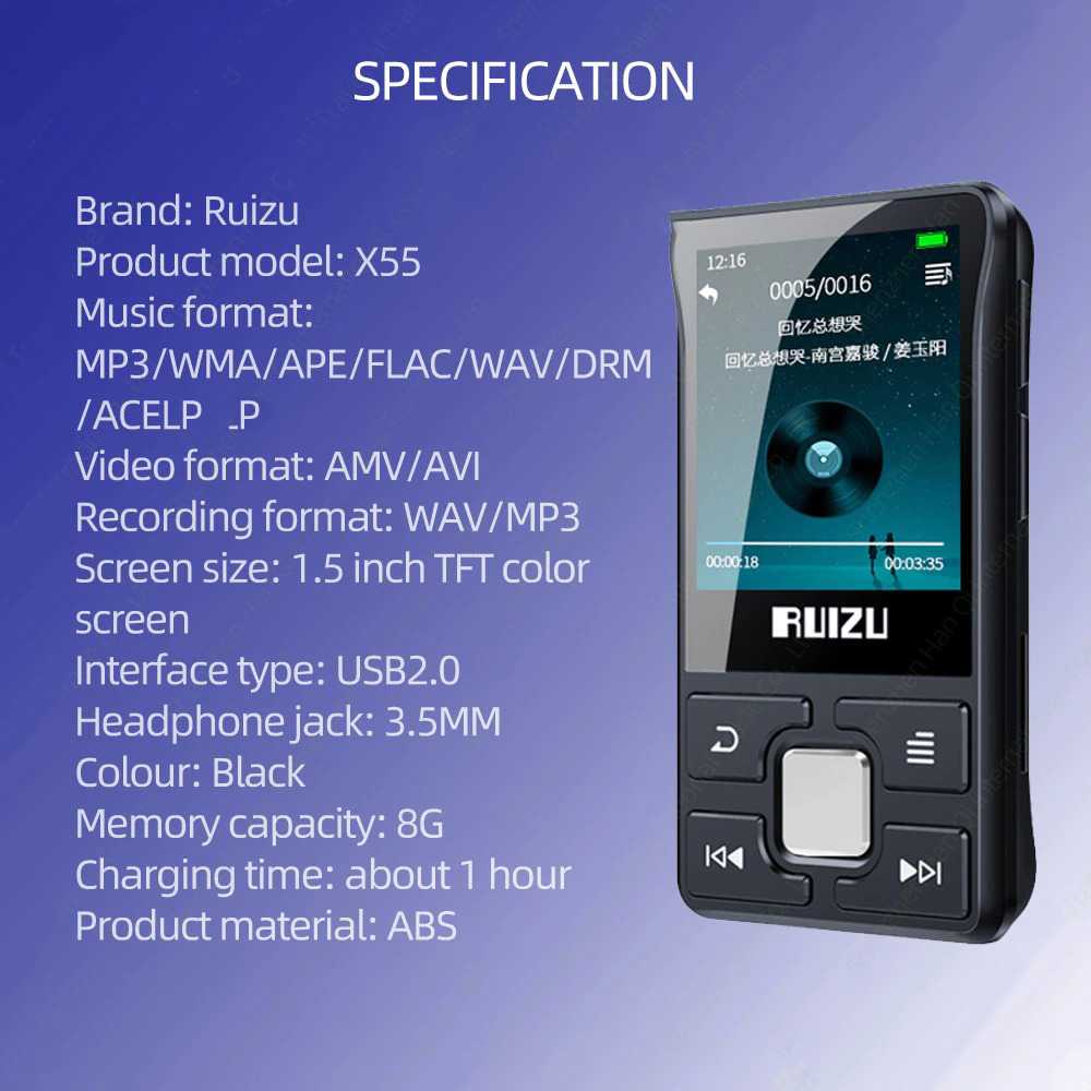 Nusantara Store - Ruizu Sport Bluetooth Mp3 Player Dap With Back Clip - X55
