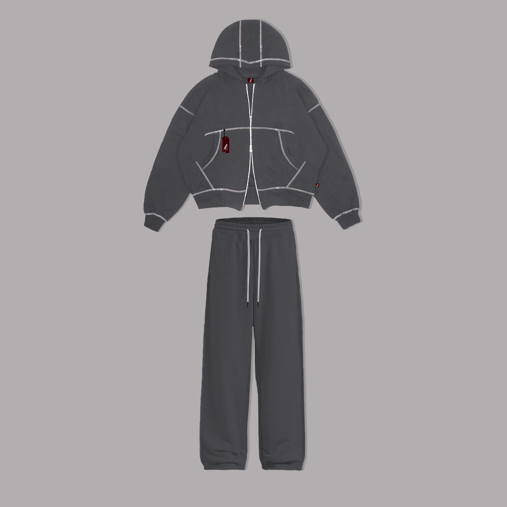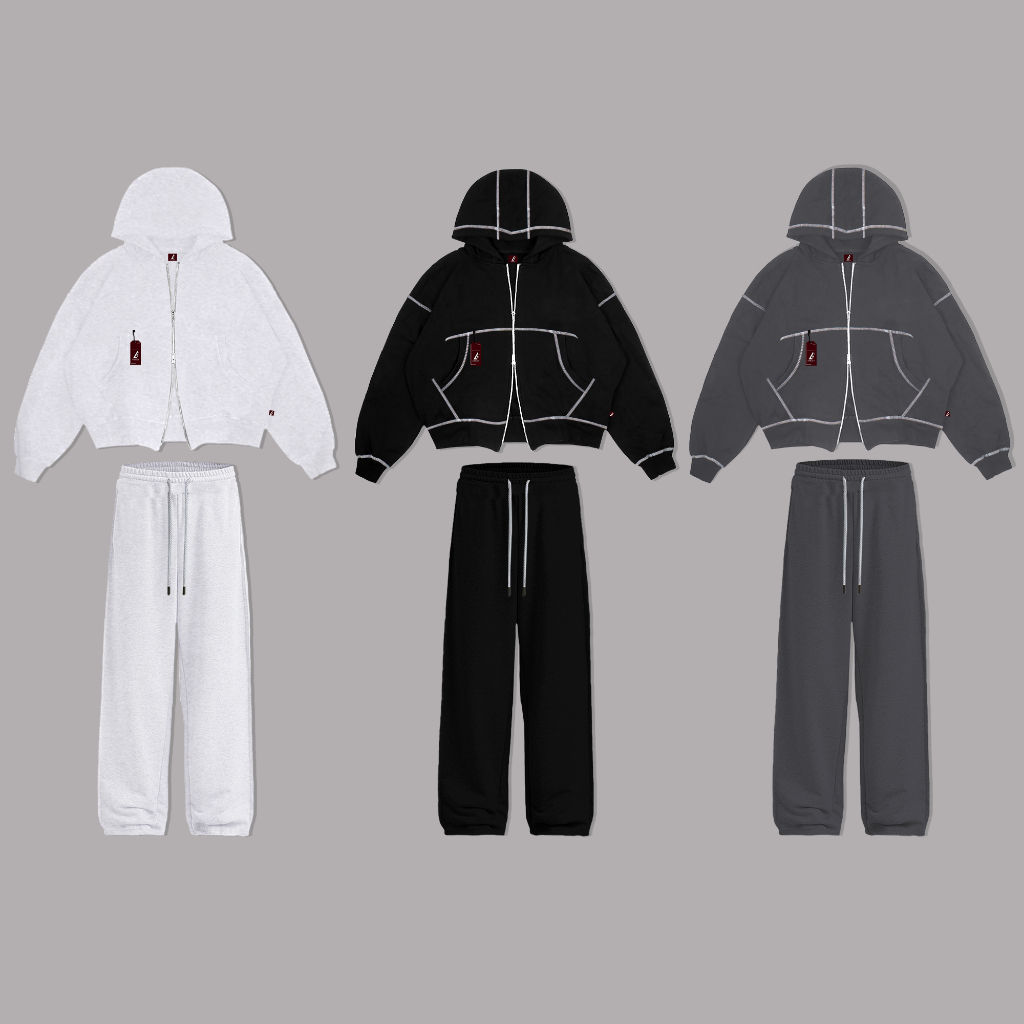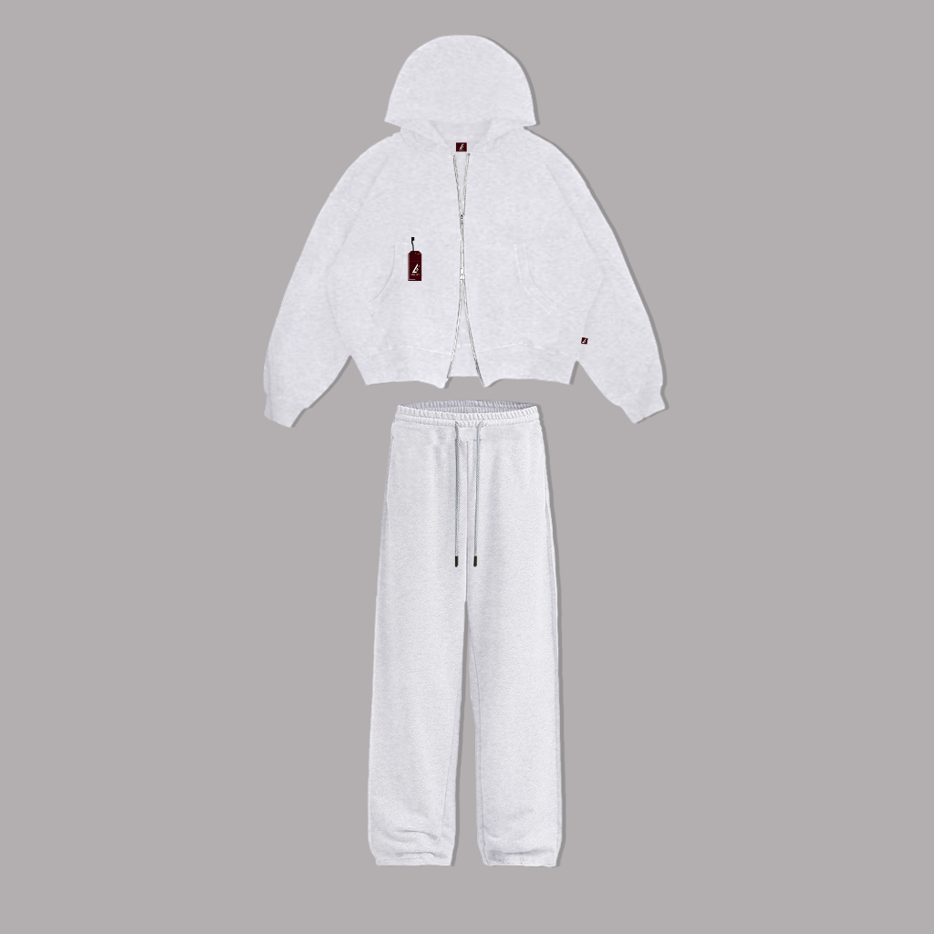 ONE SET DOUBLE ZIPPER BOXY HOODIE + BAGGY SWEATPANTS BASIC FLEECE