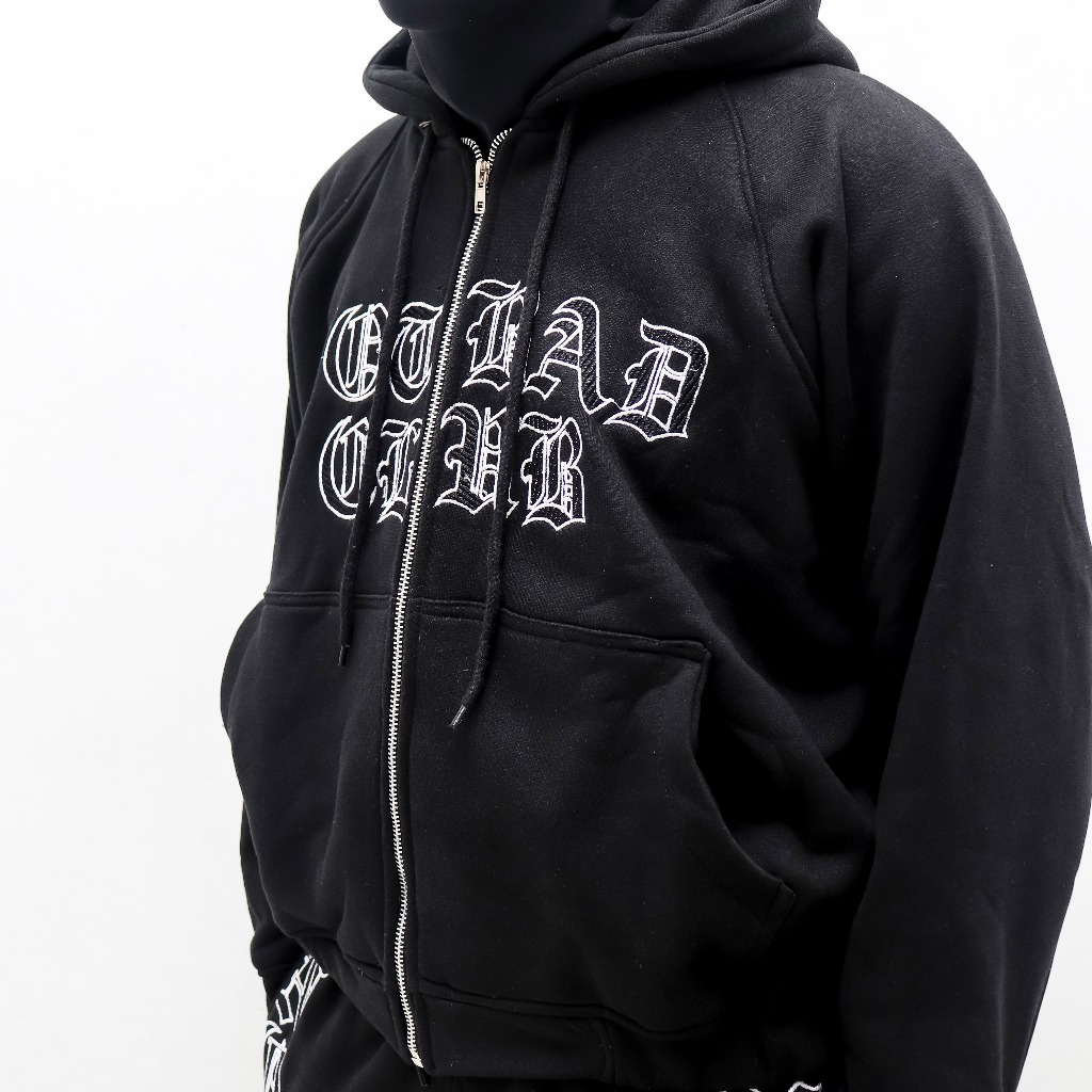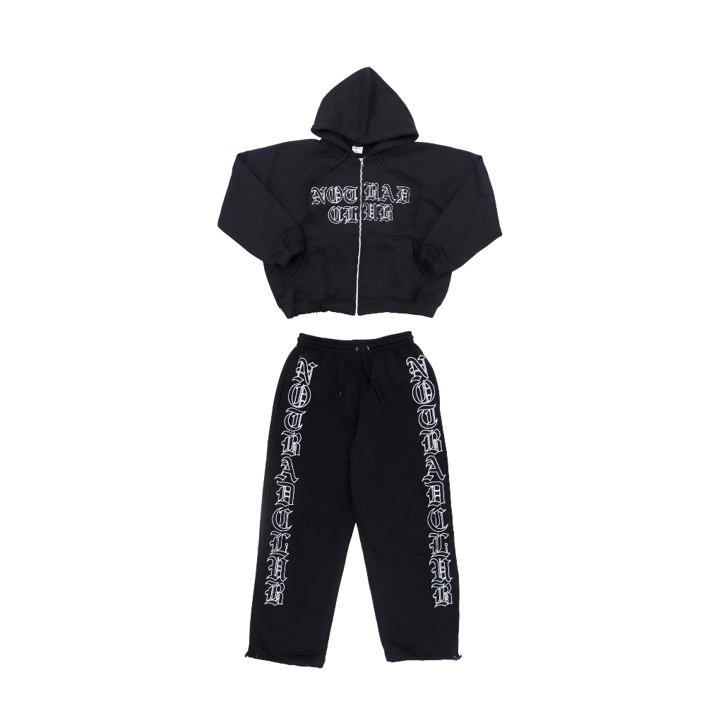NOTBADCLUB - CENTRA II - ONE SET HOODIE ZIPPER BOXY SWEATPANTS HITAM FULL BORDIR