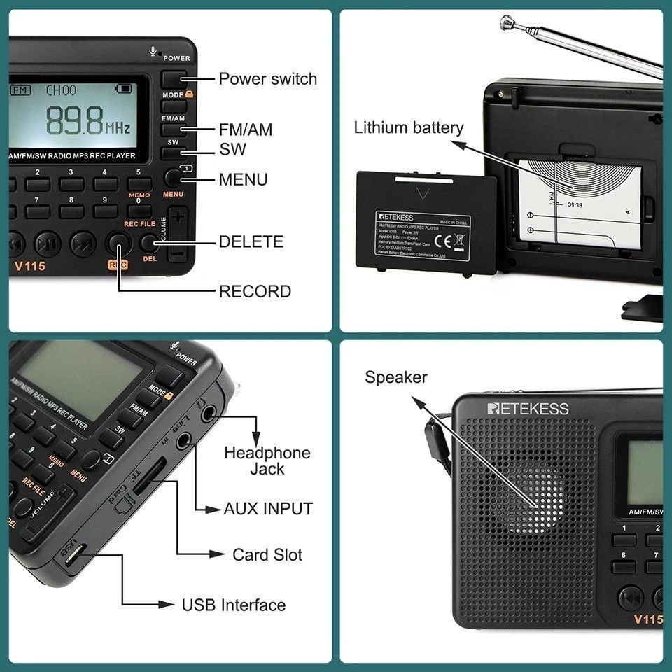 Grosirunik99 Retekess V115 - Portable Am Fm Digital Radio With Mp3 Player