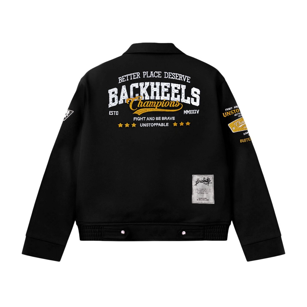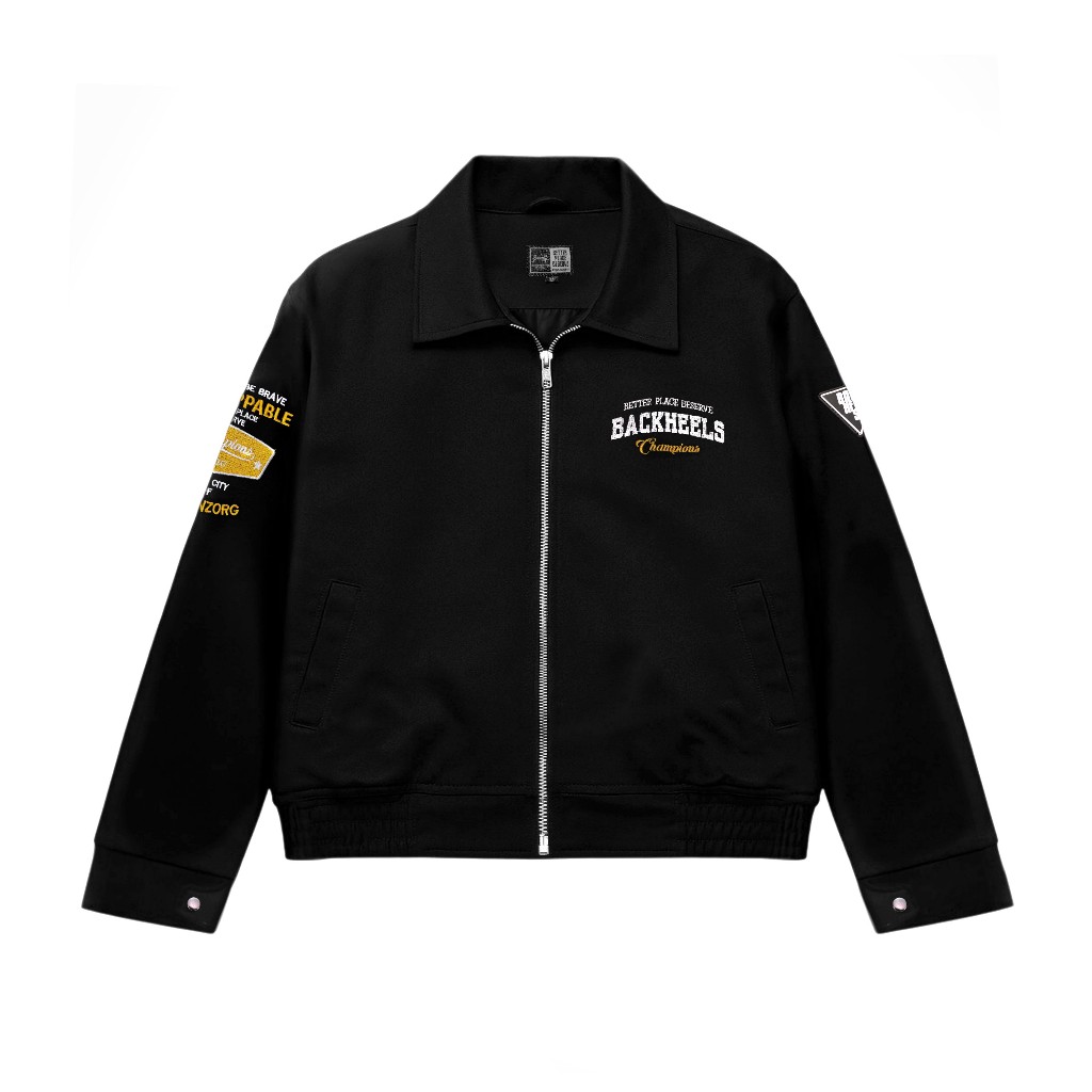 Backheels Work Jacket Boxy Champions Hitam Unisex