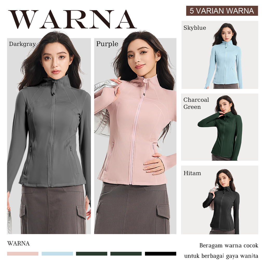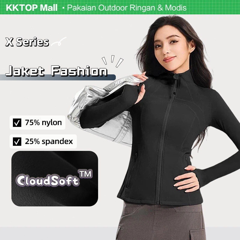Kktop Jaket Wanita Lycra® Kerah Tegak Stand Collar Tahan Angin Quick Dry Slim Sport Gym X021