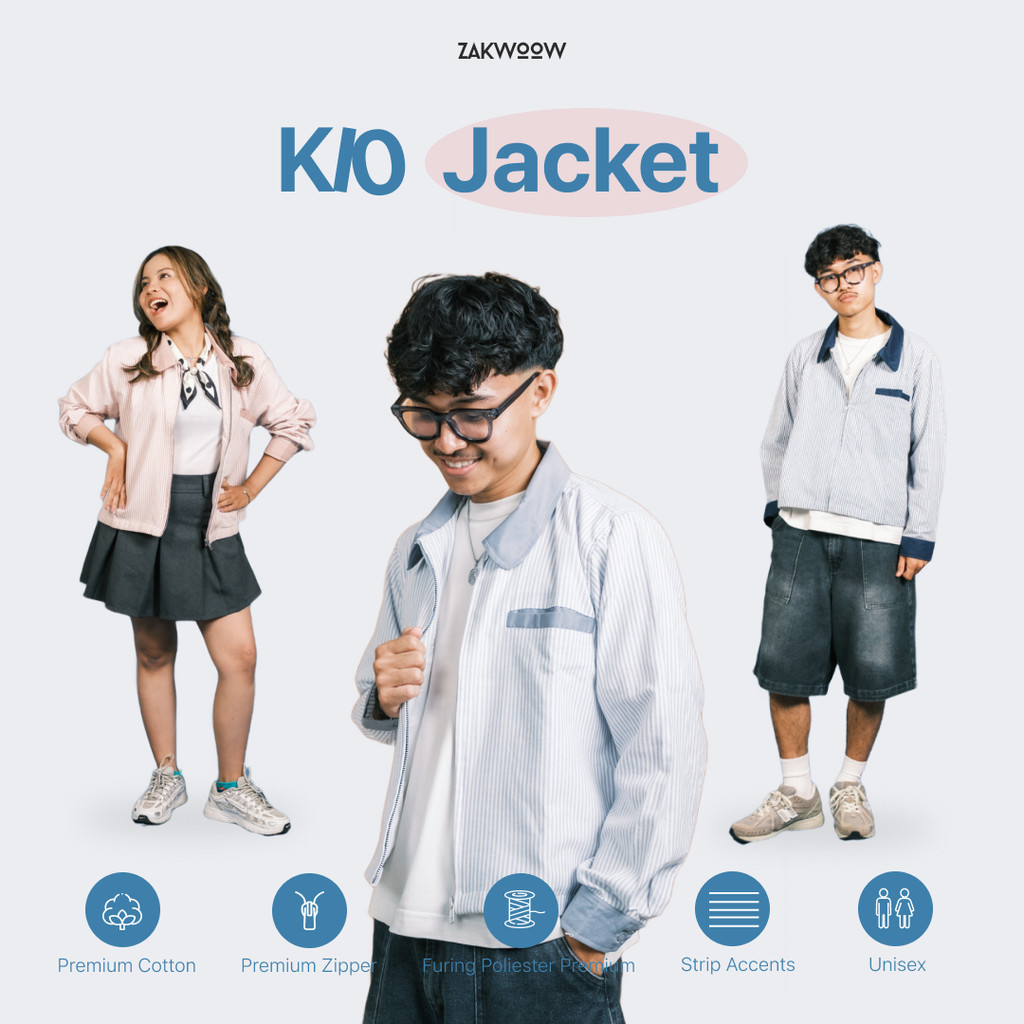 Zakwoowstyle Kio Jacket – Jaket Garis Unisex Premium Zipper | Outwear Casual Pria Wanita | Jaket Oversize Kekinian | Jak
