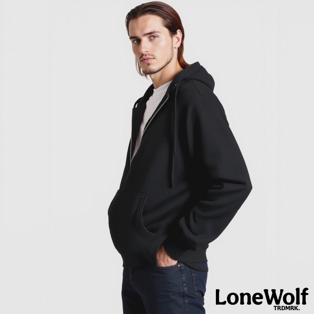 LoneWolf - Double Zipper Hoodie Boxy Fit Pria | Hoodie Double Zip Tebal 300gsm