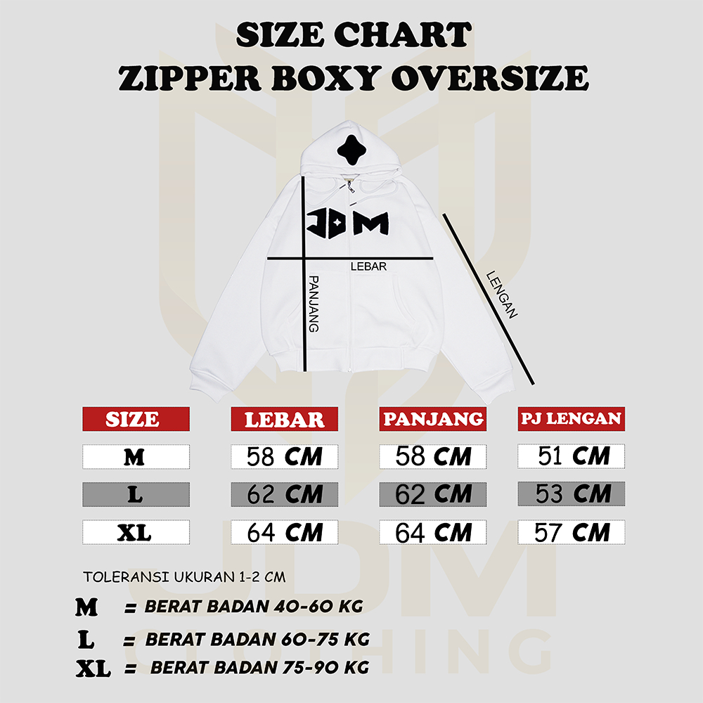 JDMCLOTHING Boxy Zipper Hoodie Fleece 280 Gsm Double Kepala Zipper Uni