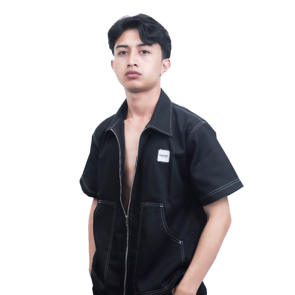 Qwertylife Workshirt Boxy Double Zipper Basic Uni Black