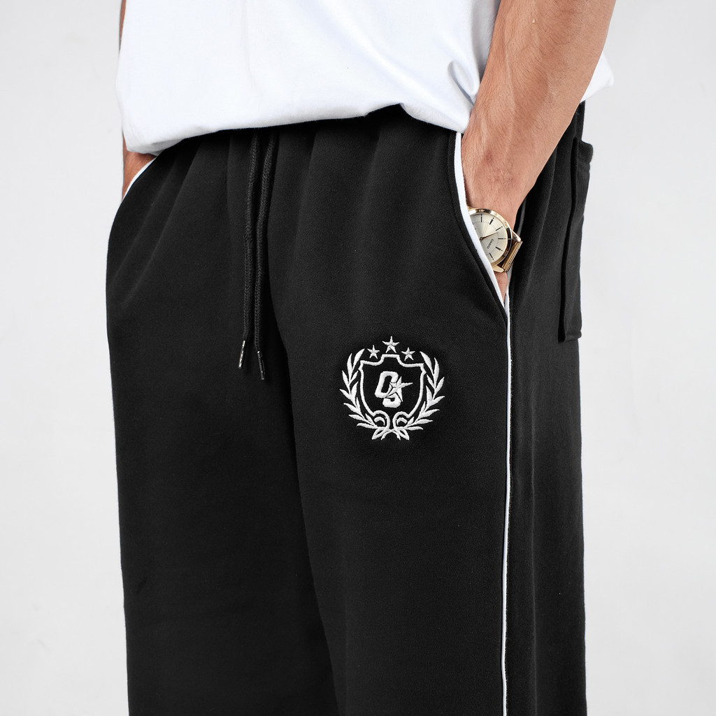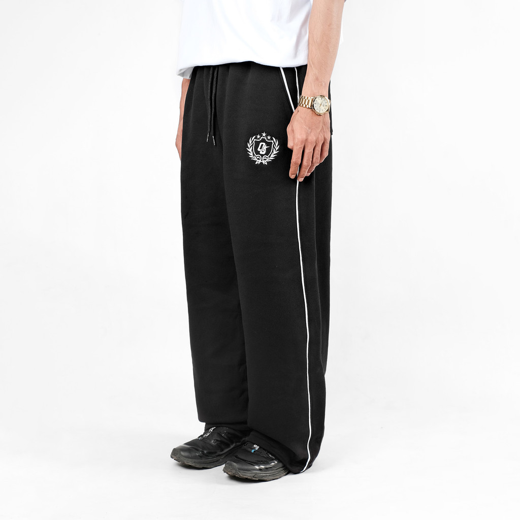 Ootdsupply Baggy Pants Line Grace & Sweet Embroidery | Celana Panjang Unisex | Celana Sporty | Os-Bp-Blk-Gse